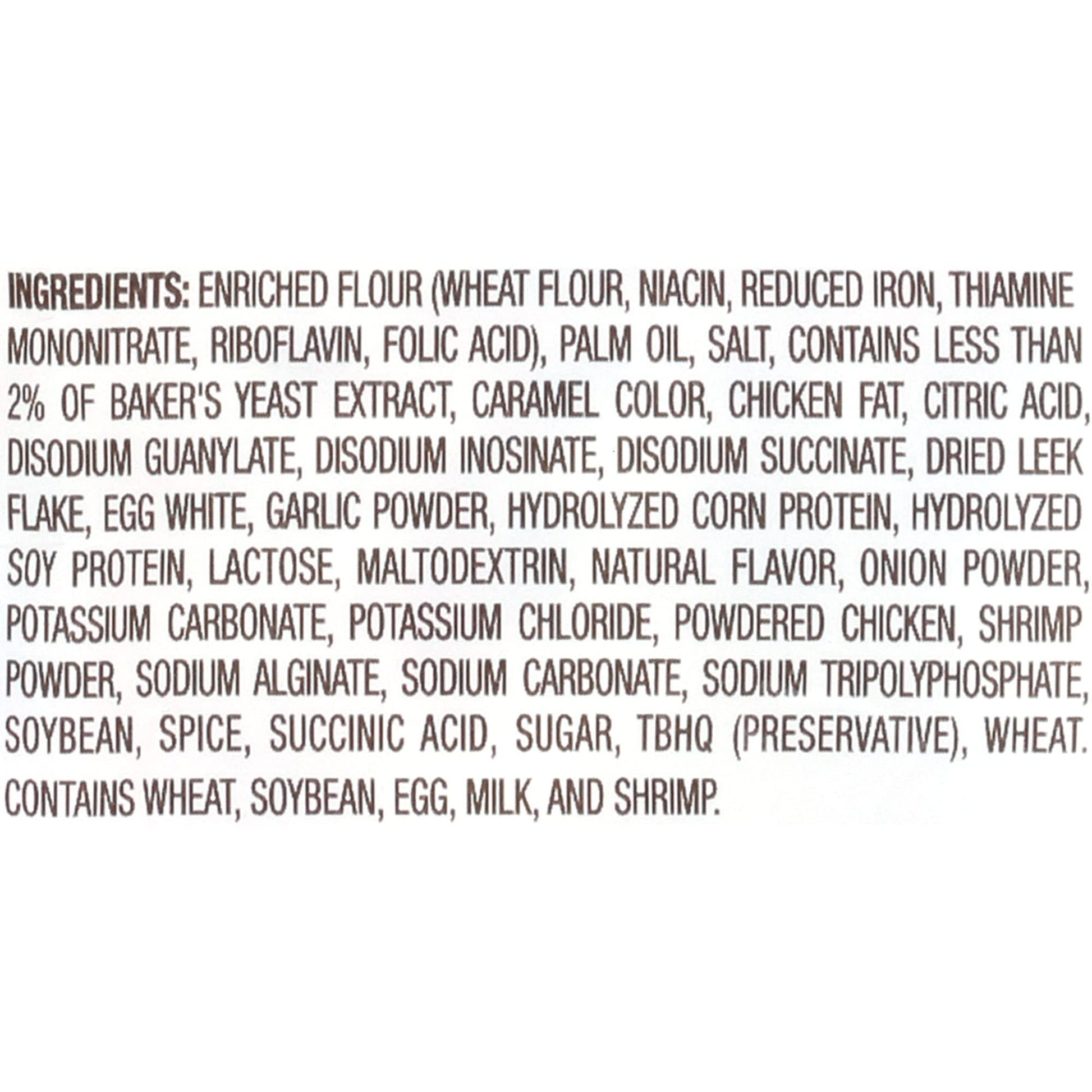 Q: What are the ingredients in Nissin Top Ramen Shrimp Flavor?A: Nissin Top Ramen Shrimp Flavor contains wheat flour, palm oil, shrimp flavoring, and various seasonings. Always check the packaging for the most accurate and updated ingredient list.
