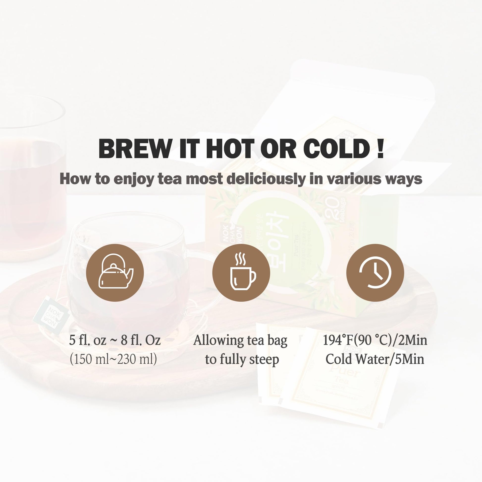 - Q: Can I take Nokchawon Puer Tea with me on the go? A: Absolutely! The individually wrapped tea bags make it easy to take Nokchawon Puer Tea anywhere, whether it's to the office, on a camping trip, or during travel. Simply tear open a packet, add hot or cold water, and you can enjoy a delicious cup of tea wherever you are.