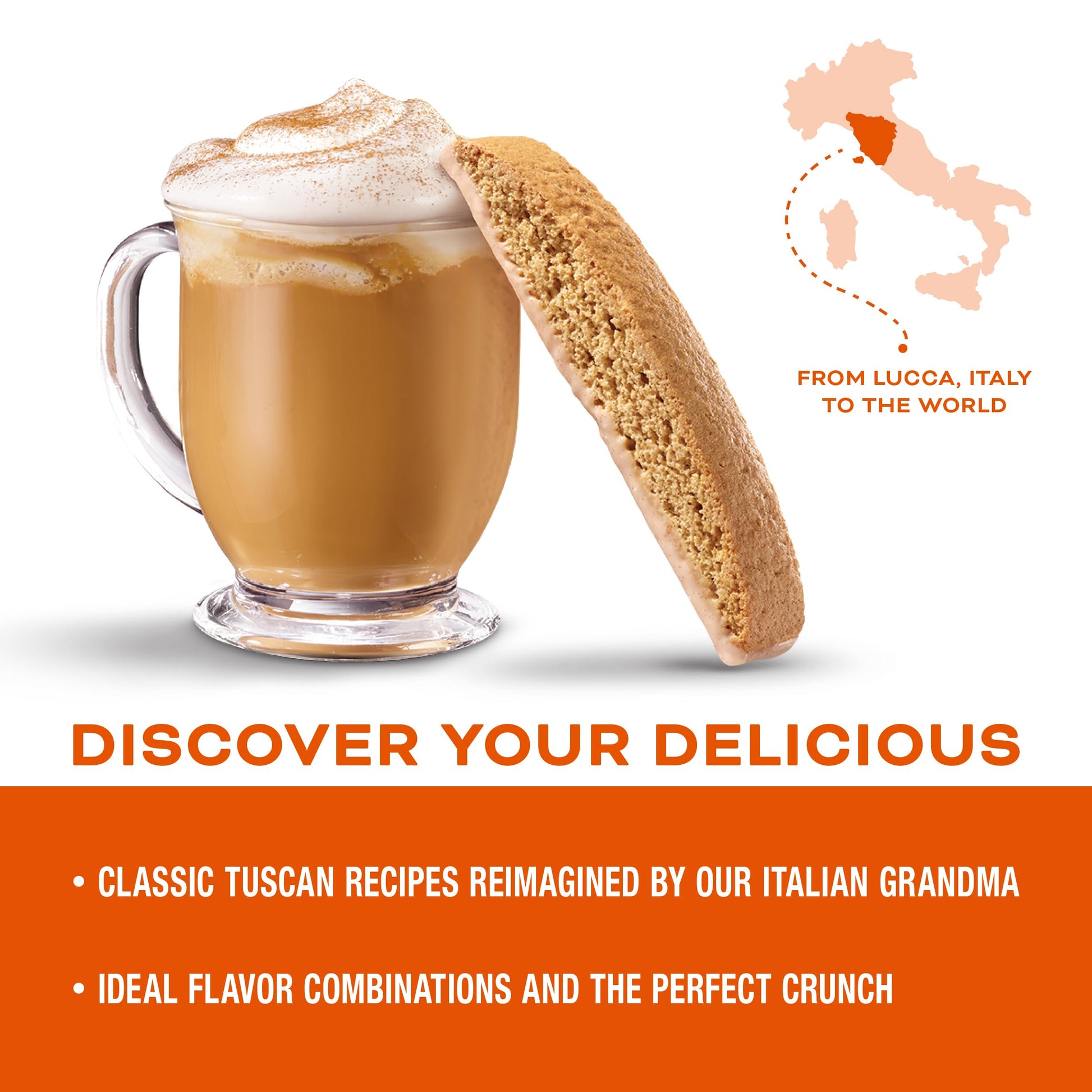 The exceptional taste and quality of all Nonnis biscotti cookies start with traditions that go back to the hills of Tuscany. Everything we do is rooted in the simple, tried and true techniques of the old country. Youll love these sweet, twice-baked slices of biscotti heaven. Product Highlights: Seasonal Fan Favorite - Now, you can enjoy our coveted pumpkin spice specialty biscotti! Individually Wrapped Cookies & - Bring these classic Italian individually wrapped cookies to any seasonal event or party. Each cookie is made with the finest ingredients. Enjoy the mouthwateringly sweet twice-baked slice of heaven you love! Authentic Italian Treat - Indulge your tastebuds and enjoy your favorite Italian biscotti treat from the comfort of your home. Makes The Perfect treat - If youre looking for the perfect Thanksgiving, Christmas, or birthday treat, look no further. Your friends and family will love these twice-baked holiday cookies. Biscotti Lovers Tips: Grab your favorite specialty coffee or beverage and enjoy your favorite Nonnis biscotti cookie. Serve your biscotti cookies with ice cream on the side of a fresh fruit platter, in a parfait, or experiment with your favorite charcuterie board. Remember the classic Italian tradition of Nonnis biscotti for generations to come. Check out Nonnis brand for more of our beloved tasty treats.