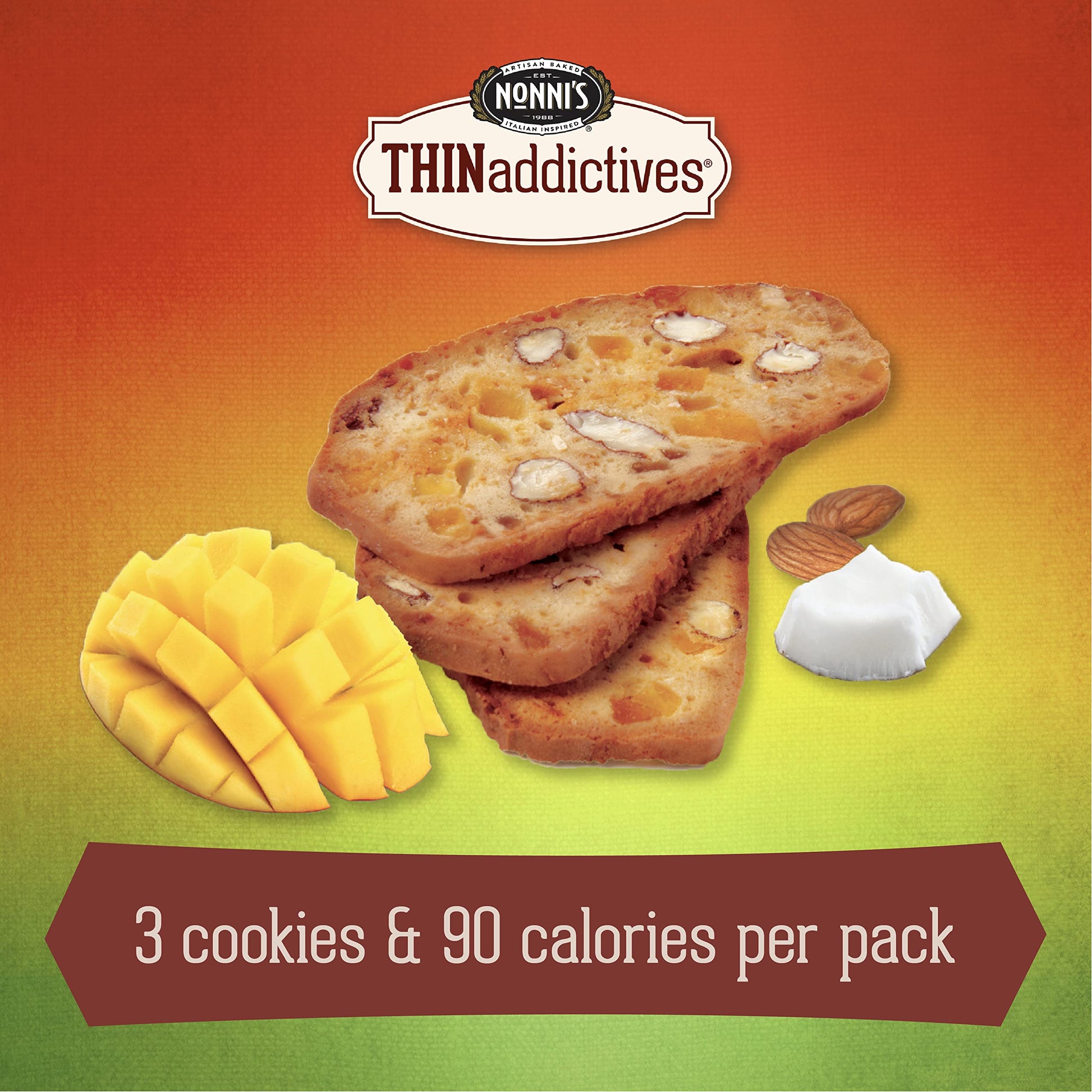 Nonni's THINaddictives Almond Thin Cookies - Mango & Coconut Biscotti, 4.4 oz - Sweet & Chewy Individually Wrapped Kosher Coffee Cookies
