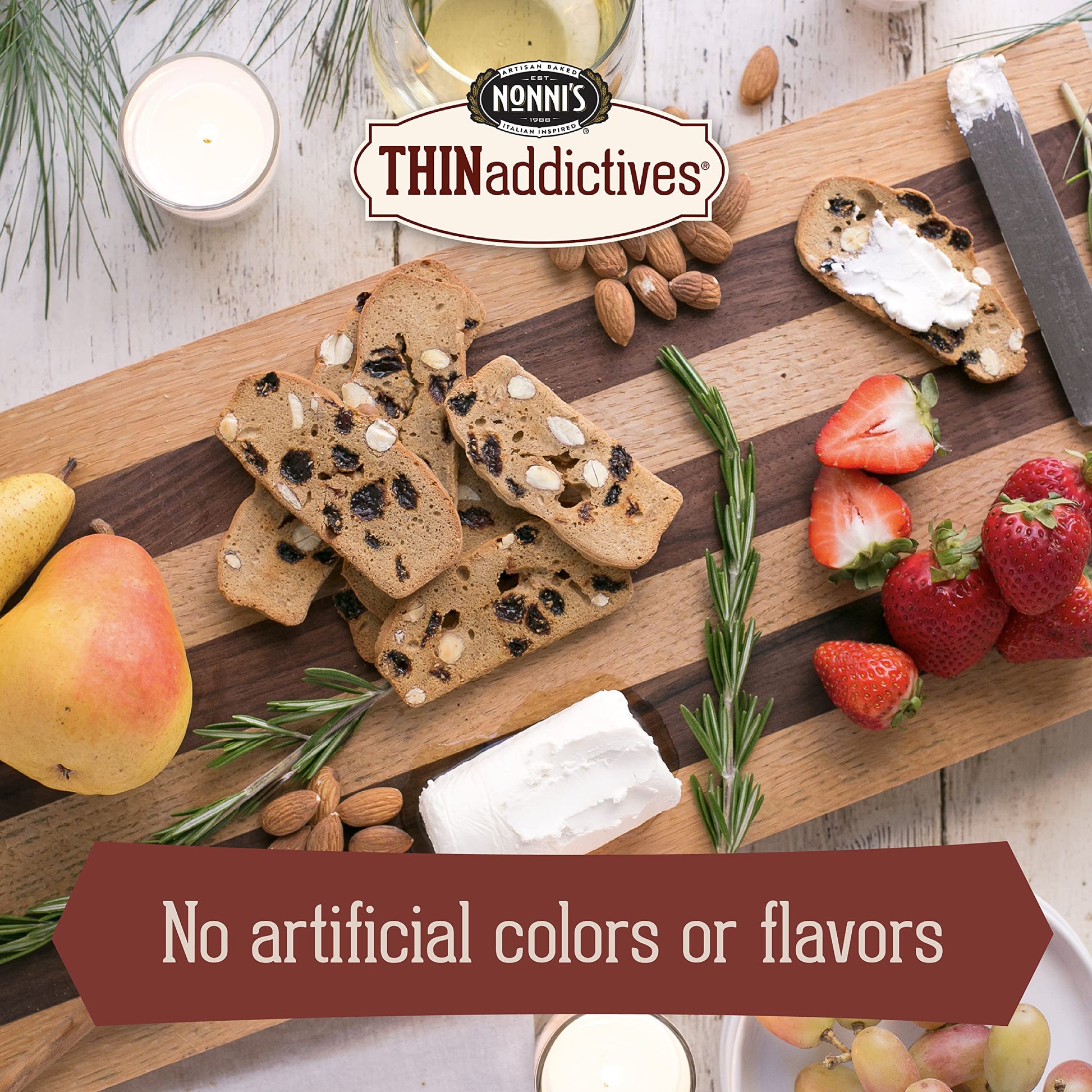 - Q: What makes these almond cookies different from regular cookies? A: Nonni's THINaddictives are thinner and crunchier than traditional cookies, offering a unique texture and delicious taste while maintaining wholesome, non-artificial ingredients.