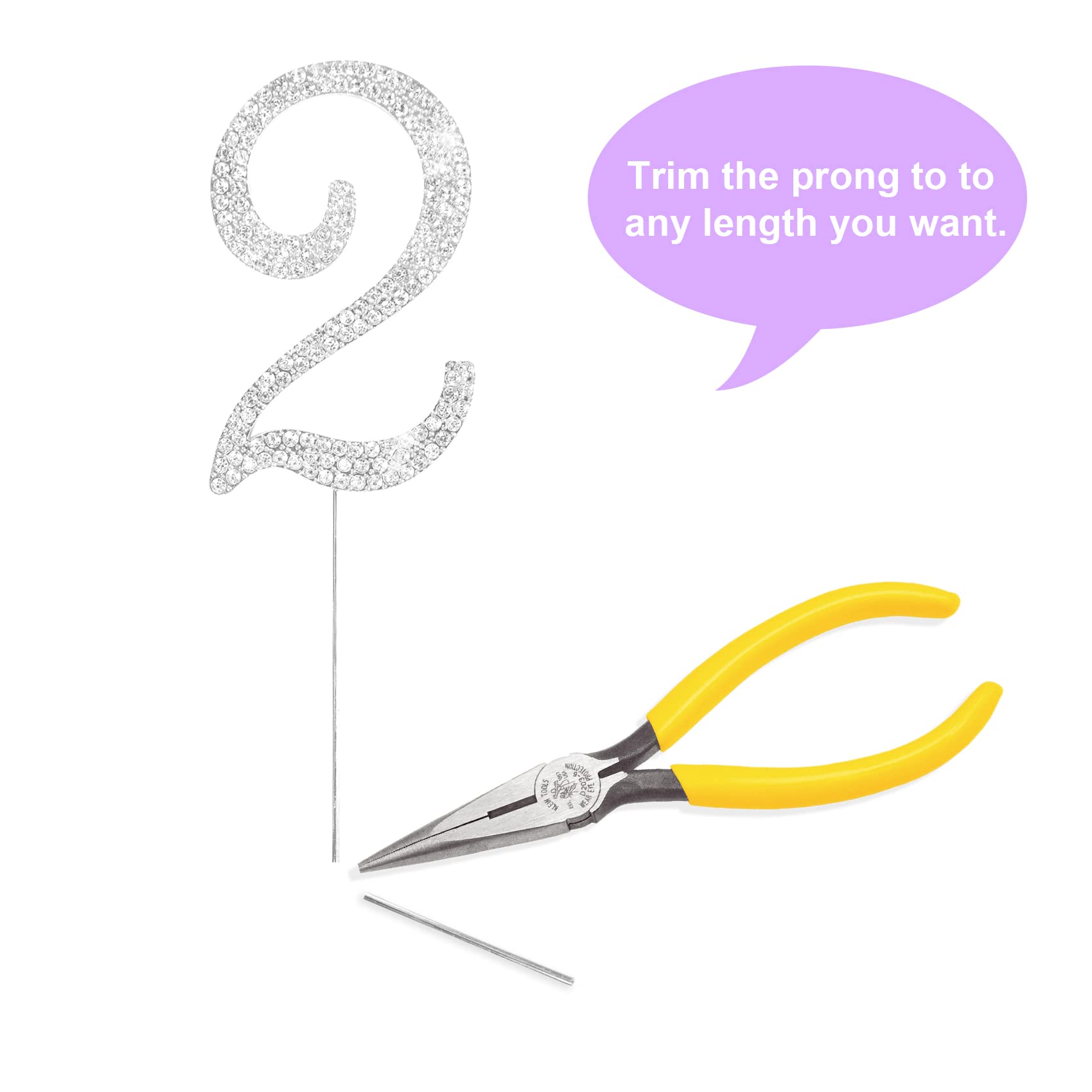 Q: How tall is the Number Cake Topper and can it be adjusted?A: The number part of the topper is approximately 4 inches tall with a 4.5-inch prong. If needed, you can trim the prong to your desired length to fit your cake.