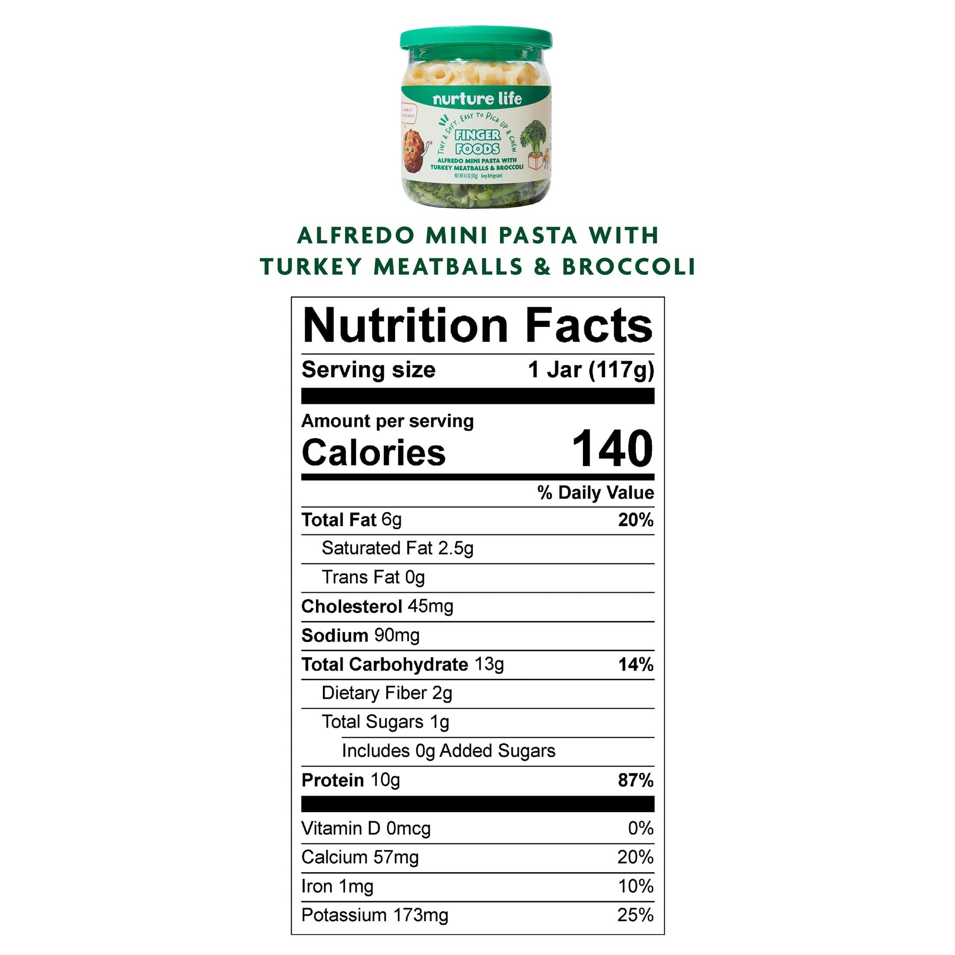 Q: What flavors can my toddler expect from the Nurture Life Finger Foods?A: Your toddler will enjoy a variety of flavors, including the delicious Alfredo Mini Pasta with turkey meatballs and broccoli, designed to be both nutritious and appealing to young palates.