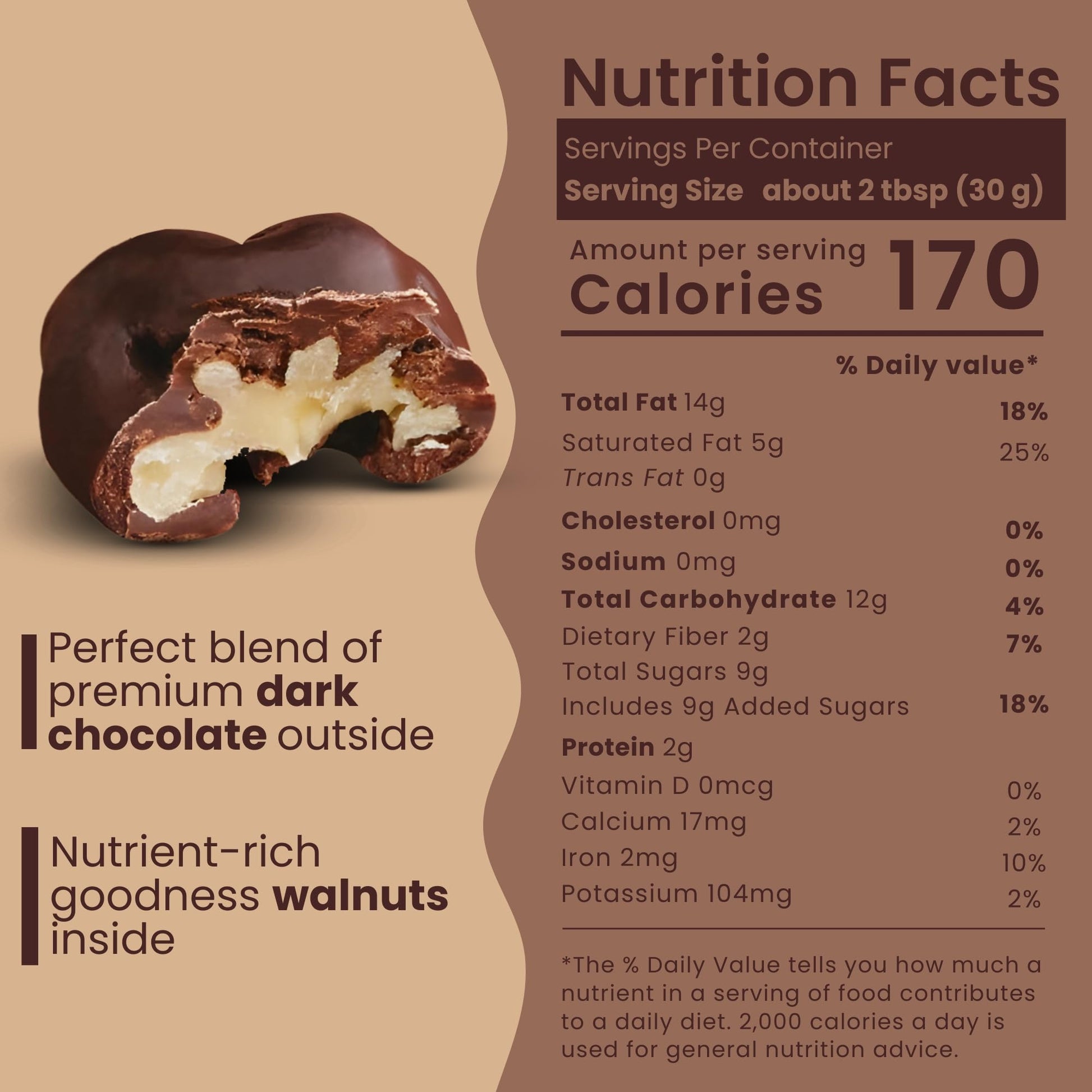 Q: What are the main ingredients in Nutic Dark Chocolate Covered Walnuts?A: Nutic Dark Chocolate Covered Walnuts are made from whole premium walnuts coated in a rich layer of dark chocolate, providing a perfect blend of nutty and chocolatey flavors.