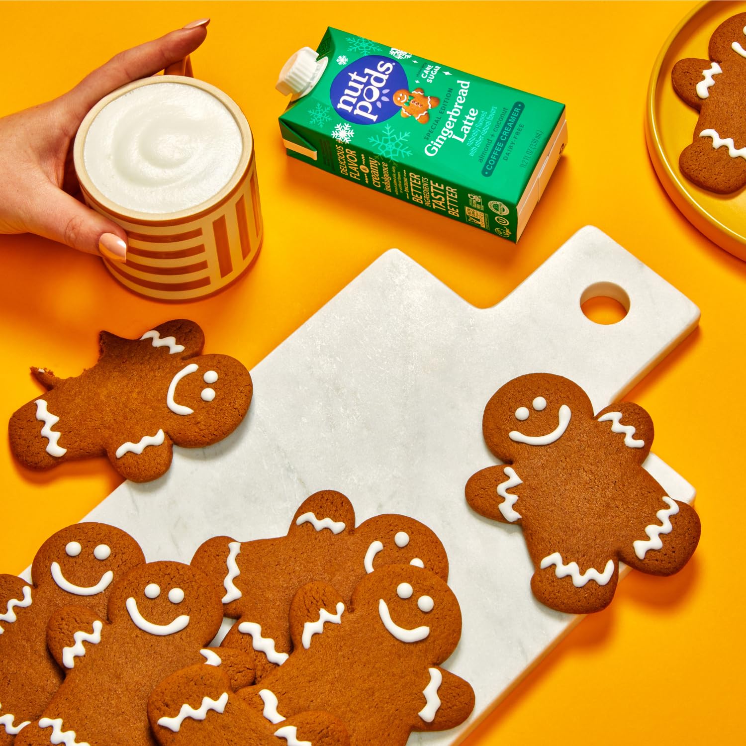 Q: What are the main ingredients in nutpods Gingerbread Latte Coffee Creamer?A: The main ingredients in nutpods Gingerbread Latte Coffee Creamer are almond milk, coconut milk, and organic cane sugar, with a total of only nine clean ingredients.