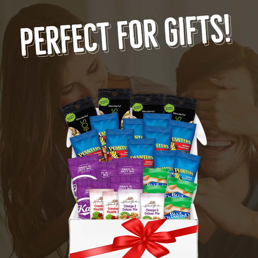 This Delicious Assortment Of Nut Variety Packs Includes 28 Units Of Individually Wrapped Nuts. A Mix Of Yummy And Healthy Snacks! Includes Mixed Nuts Individual Packs Including Pistachios, Blue Diamond Almonds, Nature'S Garden, Planters Peanuts, Kars Sweet And Salty Mix. Why Choose Us? Bussin' Boxes Isn'T Your Ordinary Gift Box Company. All Of Our Items Are Packaged Professionally In The Usa And We View Every Order As An Opportunity To Exceed Our Customers Expectations. This ''Box'' Is The Perfect Care Package Or Gift! Although Our Customer'S Purchase Most Often For Themselves; We Know They Also Love To Gift Them For Holidays And Special Events Including College Final Exams, Birthday'S, Thanksgiving, Halloween, Christmas, Valentine'S Day, Easter And More!