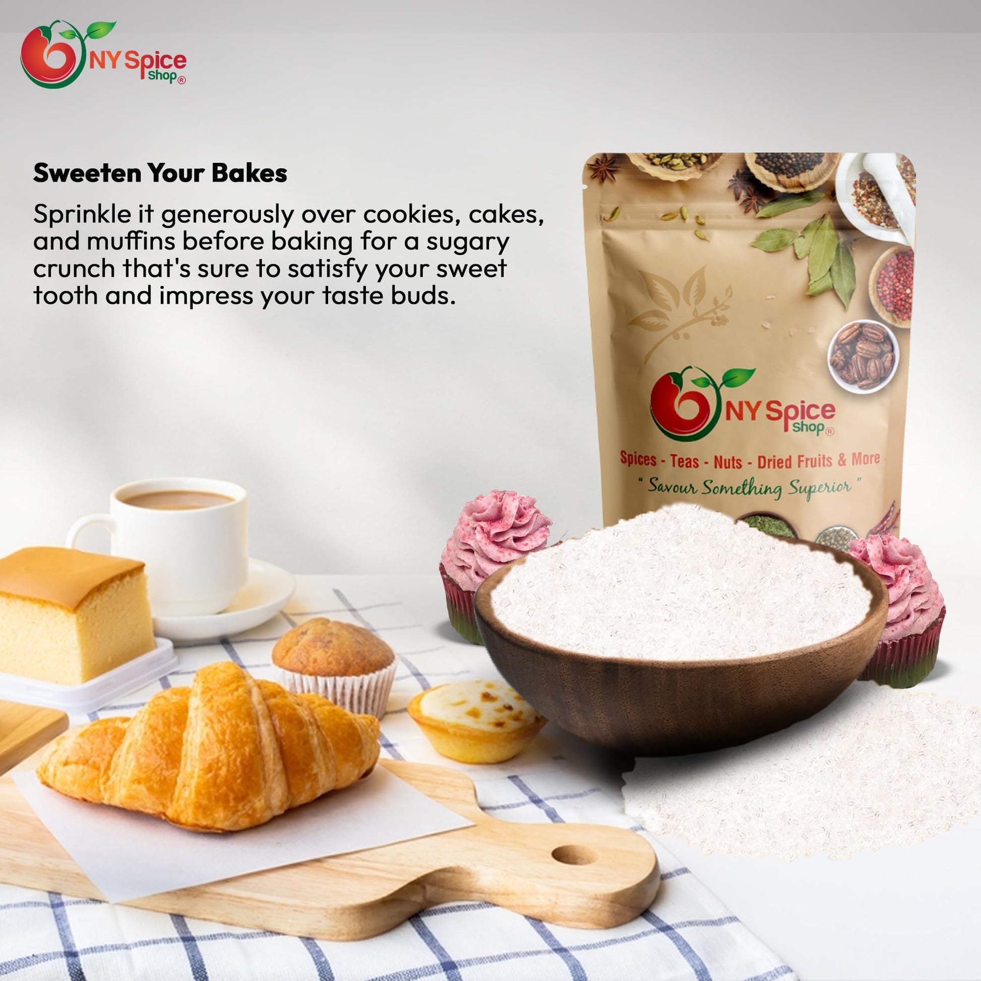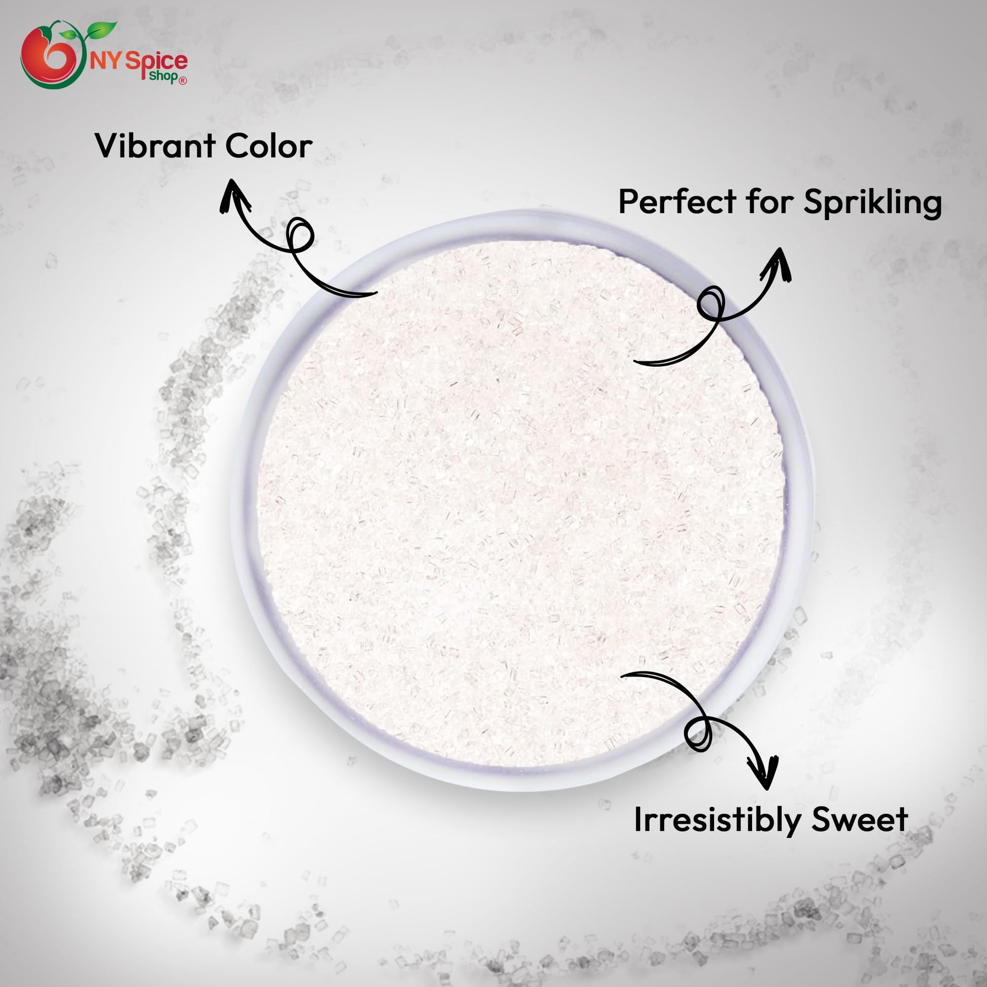 Q: What is NY Spice Shop White Sanding Sugar used for?A: NY Spice Shop White Sanding Sugar is perfect for decorating cakes, cookies, and desserts. It adds a festive sparkle to your treats, making it ideal for celebrations, gift baskets, and party favors.