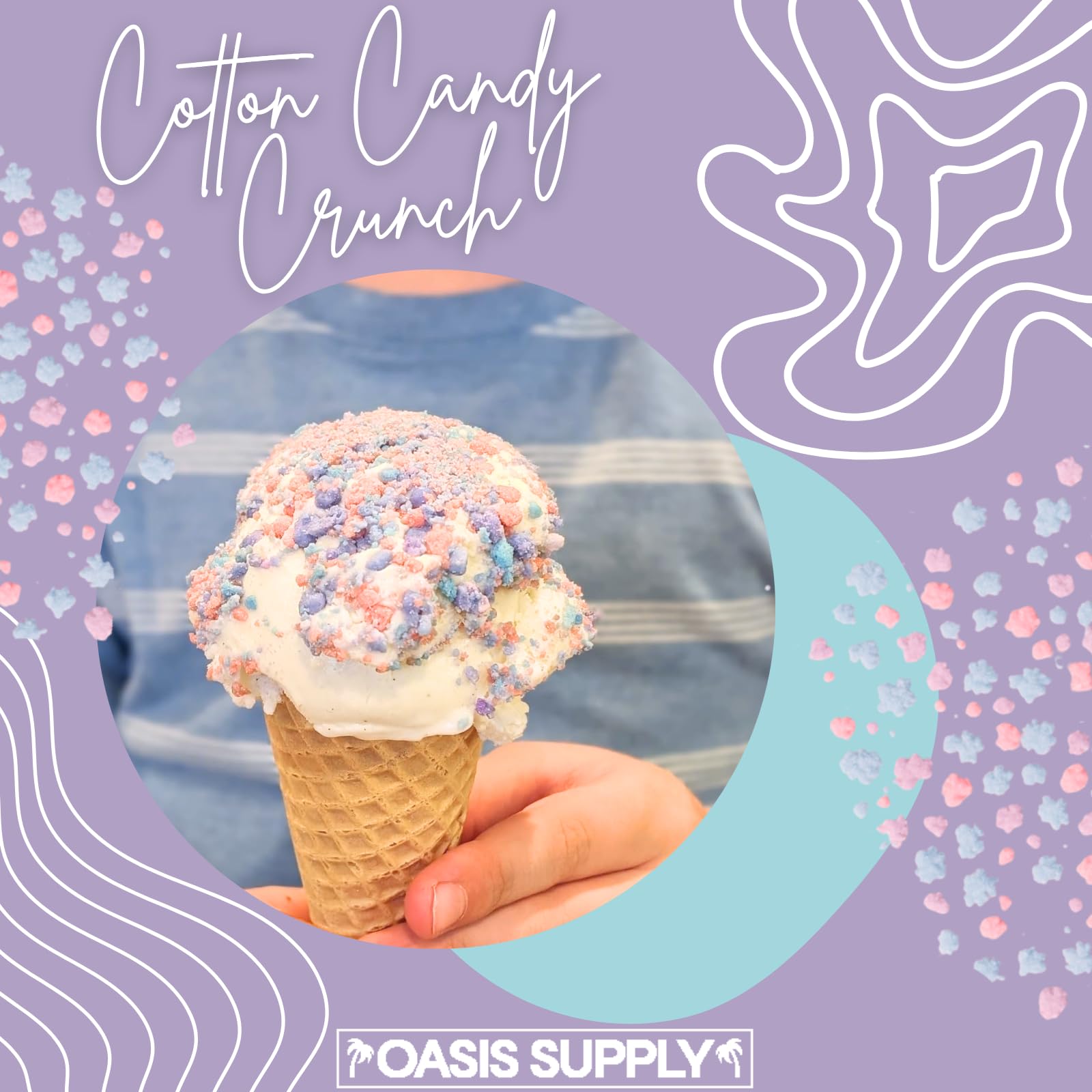 Add A Delicious Crunch To Your Favorite Treats With Oasis Supply Cotton Candy Crunch Topping! This 14-Ounce Blend Of Crispy, Crumbles, And Cotton Candy Flavor Perfectly Enhances Ice Cream, Frozen Yogurt, Cupcakes, Cakes, And Other Desserts. Inspired By The Classic Cotton Candy, This Topping Delivers A Satisfying Texture And Rich Taste That Elevates Any Treat. Whether You'Re Decorating A Bakery Masterpiece Or Simply Indulging In A Bowl Of Ice Cream, This Versatile Crunch Topping Is A Must-Have For Dessert Lovers. This Vibrant Topping Gives Your Ice Cream An Irresistible Crunch And A Burst Of Color! Perfect For Swirling Atop A Cone, Its Playful Shades Of Pink, Blue, And Purple Capture The Classic Charm Of Cotton Candy. Transform Any Simple Scoop Into A Show-Stopping Dessert Thats As Delightful To Look At As It Is To Eat!