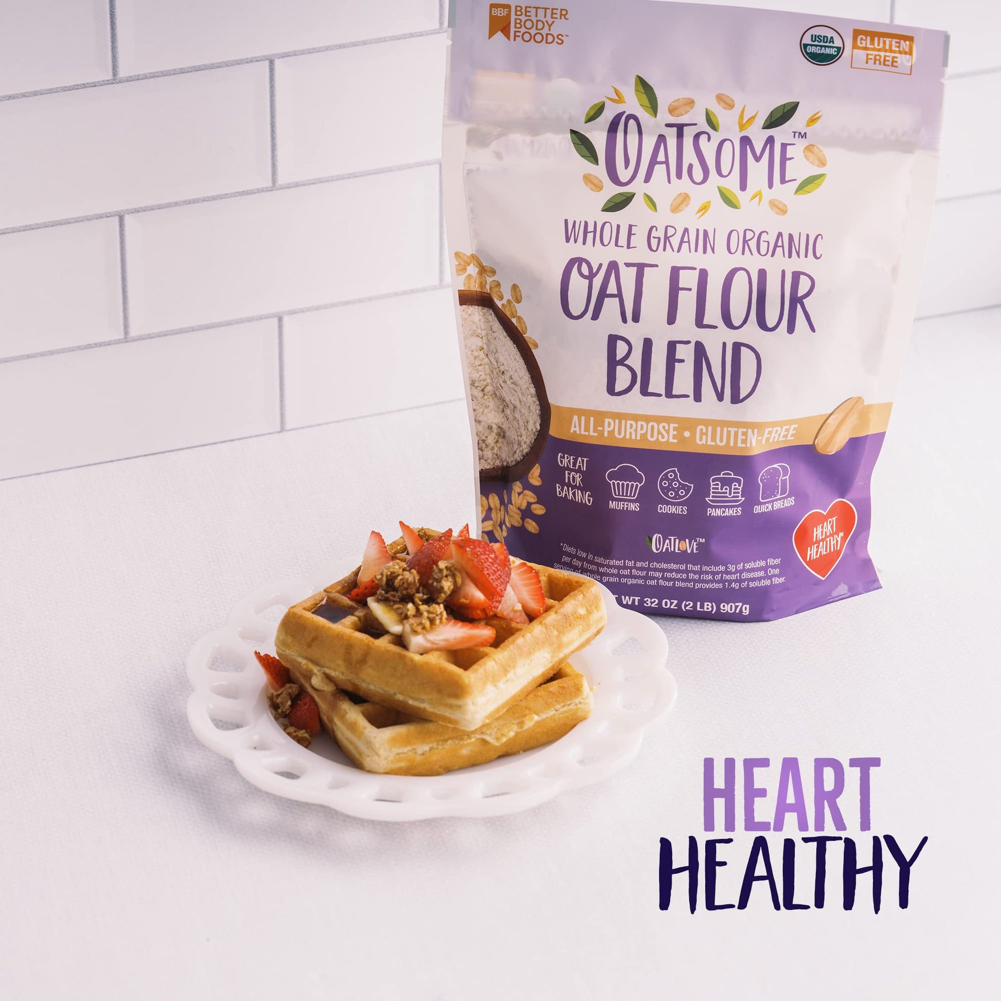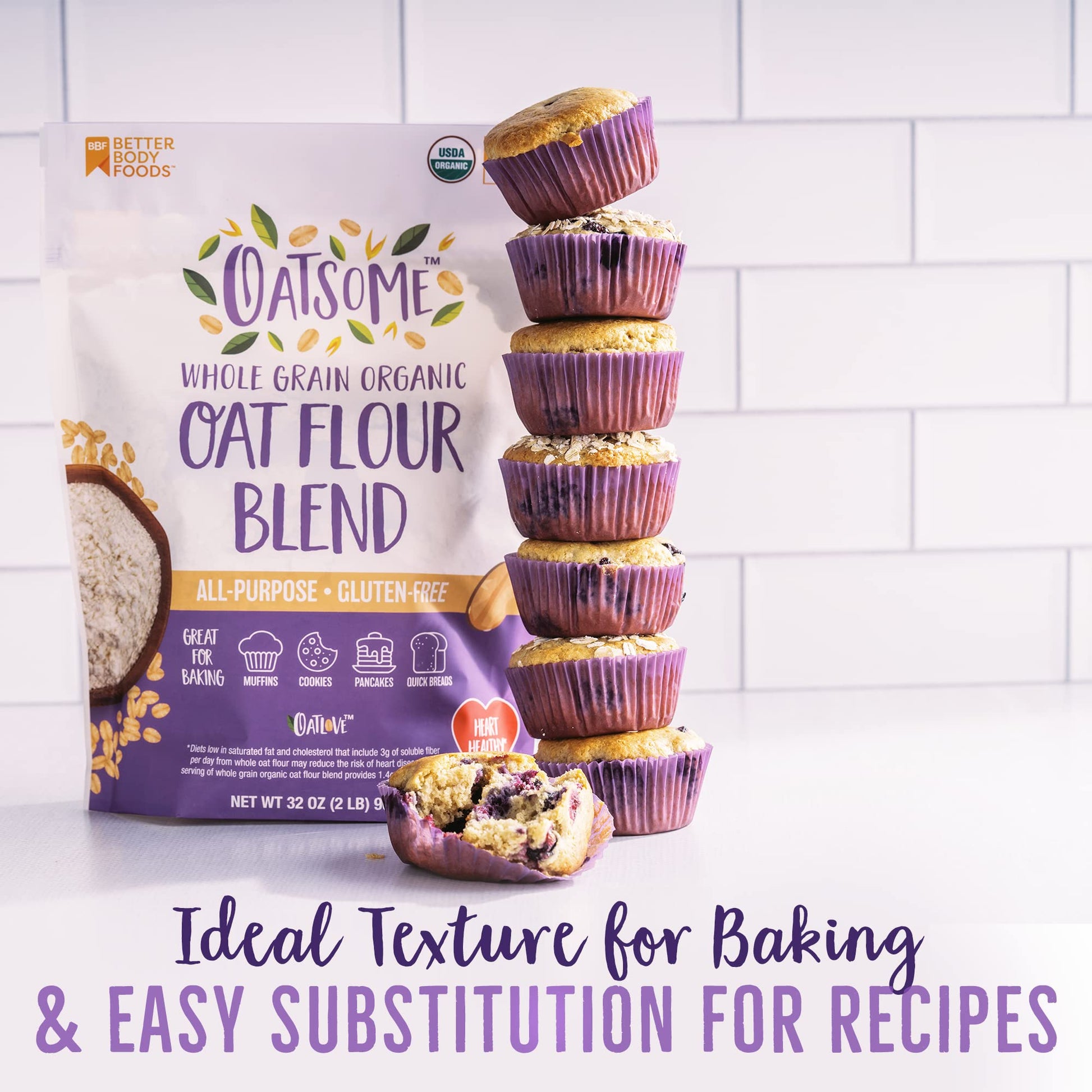 If you suffer from gluten intolerance or are simply in search of a better alternative to regular flour, oat flour is perfect as a one-to-one substitute in many dishes. From sweet baked goods to savory crusts, oat flour can be used as a wheat flour replacement in your favorite recipes. Use this versatile baking flour for dredging, breading, and baking. Youll love the endless possibilities of this pantry staple! With only 3 simple ingredients-whole-grain organic oat flour, organic buckwheat flour, and xanthan gum for baking-it has everything you need to make tasty treats. Oat flour is a great flour option to use when making extra-fluffy chocolate chip cookies, decadent brownies, or nearly any other bakeable creation. It is also great for making non-yeast breads like banana or zucchini bread. In addition, this organic oat flour works well in muffins, snickerdoodle cookies, waffle batter, biscuits, or even pancakes from scratch. BetterBody Foods is dedicated to bringing you delicious ingredients to boost your physical well-being and to giving you better alternatives to guilt-inducing foods. Eating clean doesnt have to be bland-it should be enjoyable! Thats why we make sure to use only the highest-quality and tastiest ingredients possible for your cooking, baking, and other culinary needs.