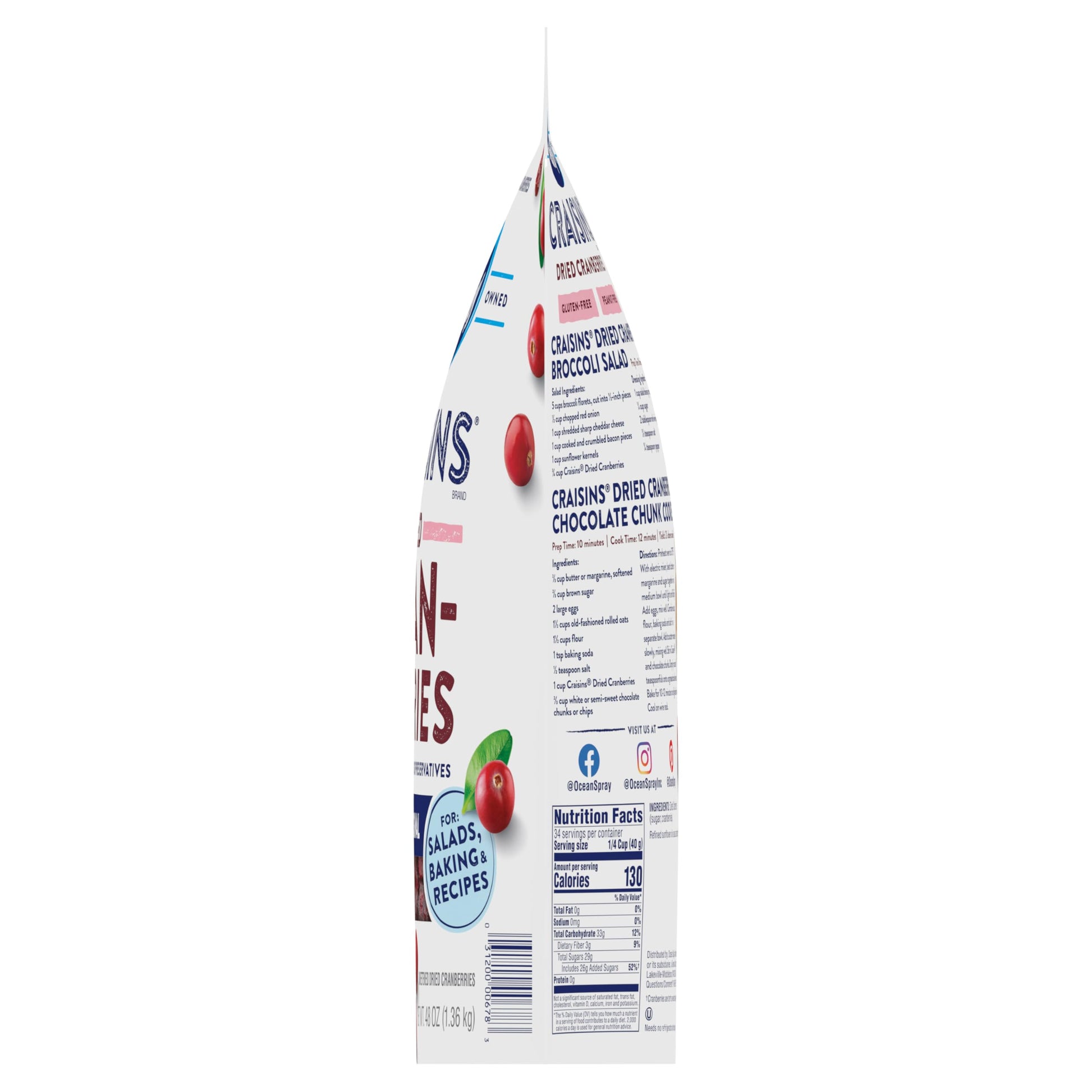 Surprise your taste buds with the sweet, delicious taste of Ocean Spray Craisins Dried Cranberries. Made with real fruit and good as a snack or in a recipe. They're naturally fat-free and cholesterol-free. Plus, Craisins are a good source of fiber and 1 serving of Craisins Original Dried Cranberries meets 25% of your daily recommended fruit needs.