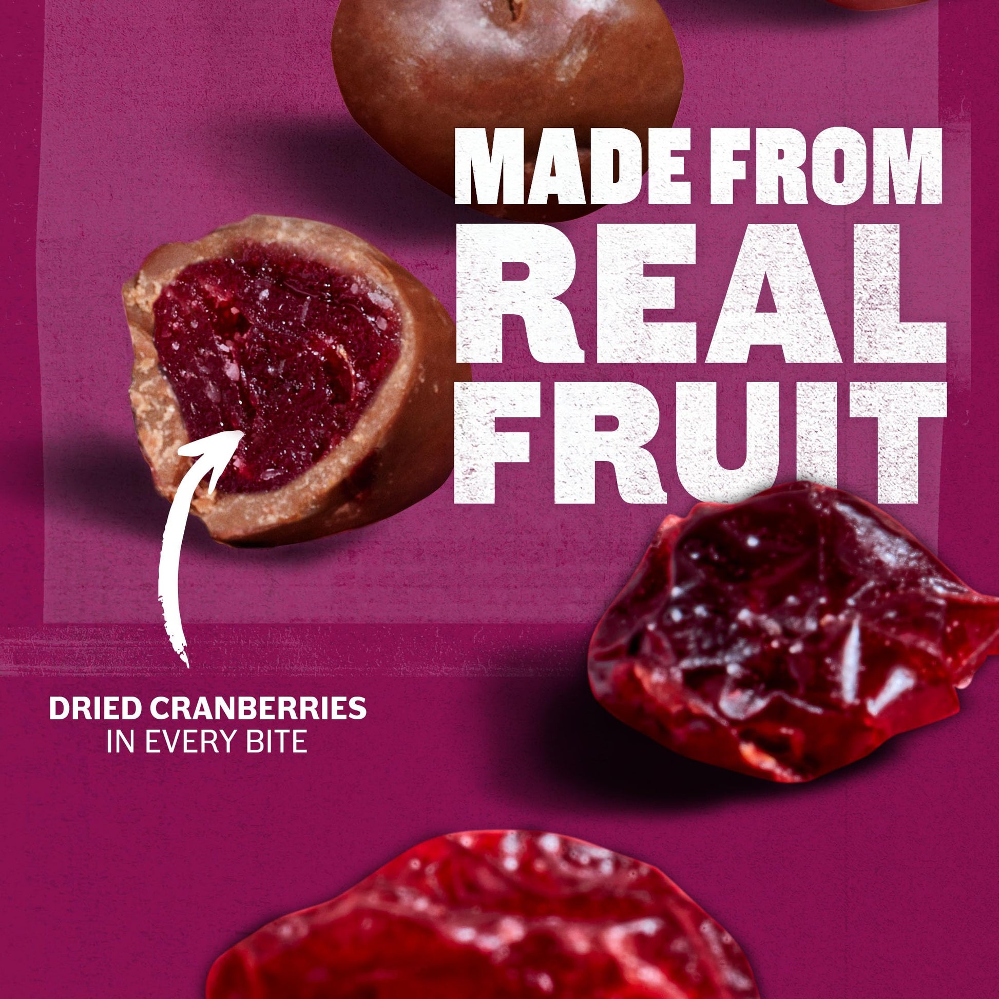 Snacking just got better. Ocean Spray® HERSHEY’S® Milk Chocolate Dipped Cranberry Bites. Dive into the fruit-full world of sweetened dried cranberries now dipped in HERSHEY’S® smooth milk chocolate goodness. This dried fruit is the perfect chocolate snack. Real, bold dried cranberries dipped in smooth milk chocolate in every dried fruit pouch. Enjoy as on the go snacks. Stash in your desk drawer. Share with friends and family. Or…don't. Stay in. Cozy up on that couch. Sprinkle over your favorite ice cream. And dig in. You and your taste buds deserve it. Step up your entertaining game by adding their bold flavor to apps, charcuterie boards and more. They're also just really good on their own. However you use them, don't let anything stand in the way of your Ocean Spray® HERSHEY’S® Milk Chocolate Dipped Cranberry Bites fix. Keep sealed in a dry place to keep these dried cranberry bites fresh for longer. Ocean Spray believes in the power of the mighty cranberry; Born Tart. Raised Bold.™