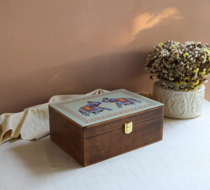 Q: What is the packaging of the Octavius Assorted Tea set like?A: The Octavius Assorted Tea set is beautifully packaged in a wooden box featuring an elephant design, adding a touch of luxury and making it an ideal gift.