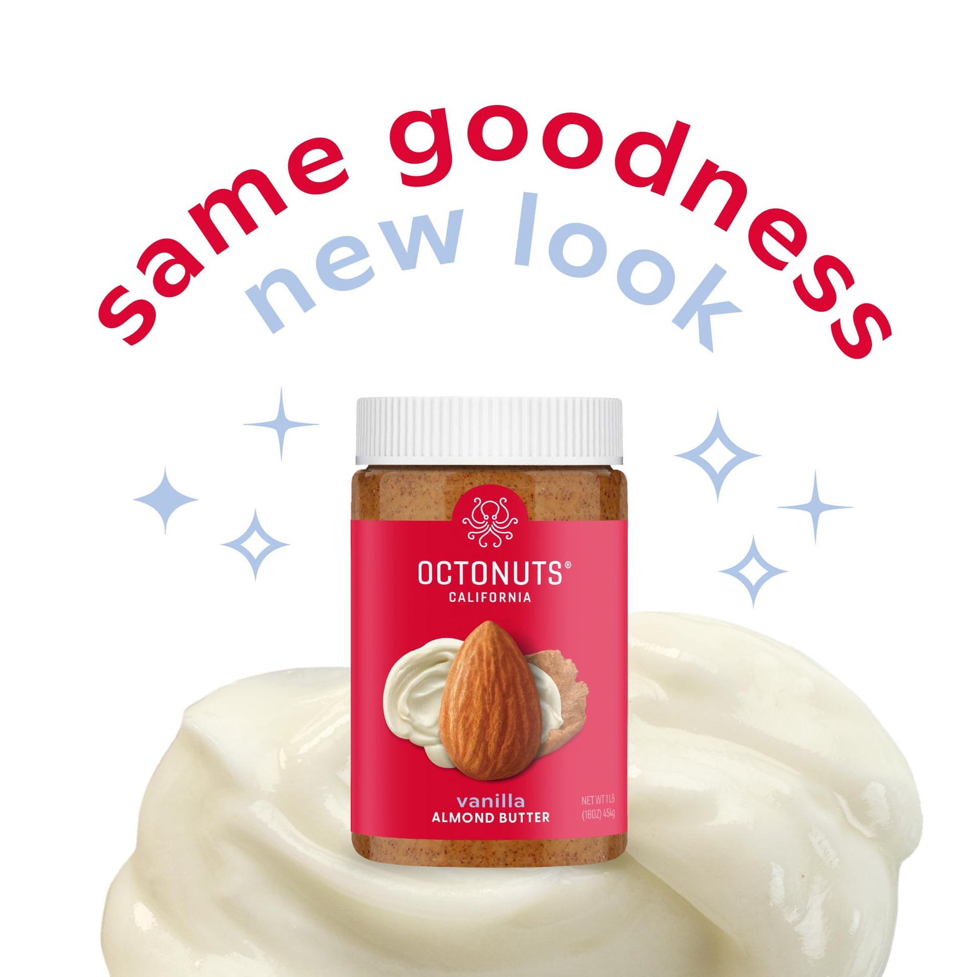 Q: What are the main ingredients in Octonuts Dry Roasted Vanilla Almond Nut Butter?A: Octonuts Dry Roasted Vanilla Almond Nut Butter is made from all-natural almonds, ensuring a creamy texture without added oils or saturated fats. It is gluten-free, vegan, kosher, and non-GMO.