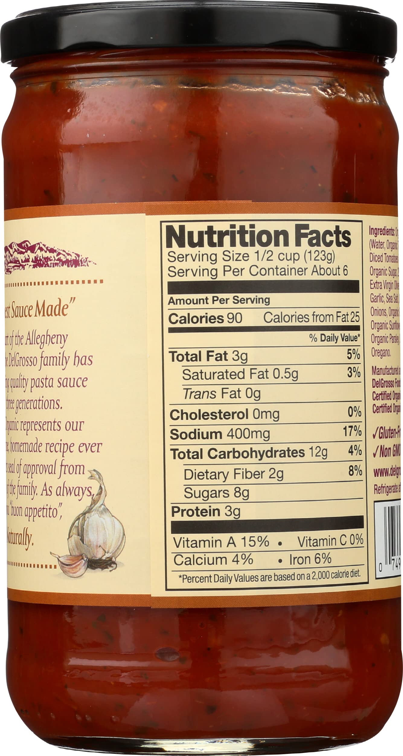 - Q: Does the sauce contain any preservatives or artificial ingredients? A: No, LA FAMIGLIA DELGROSSO Organic Roasted Garlic Pasta Sauce is USDA Organic certified and contains no added sugars, preservatives, or artificial ingredients, ensuring a pure and delicious flavor.