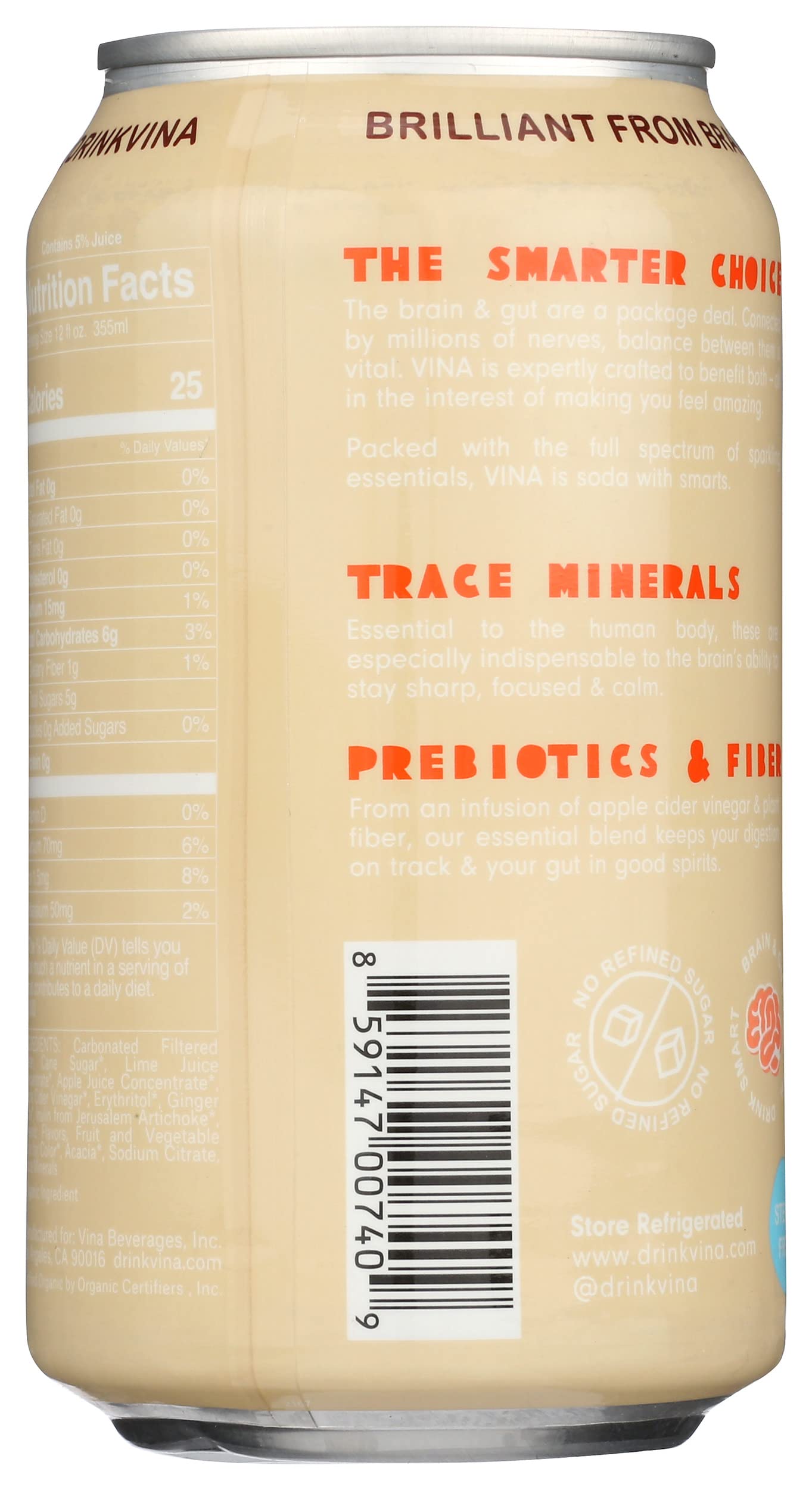 Q: Is VINA Organic Ginger Fizz suitable for people with dietary restrictions?A: Yes, VINA Organic Ginger Fizz is organic and free from artificial additives, making it a suitable choice for those following a vegan or gluten-free diet. Always check the label for specific dietary concerns.