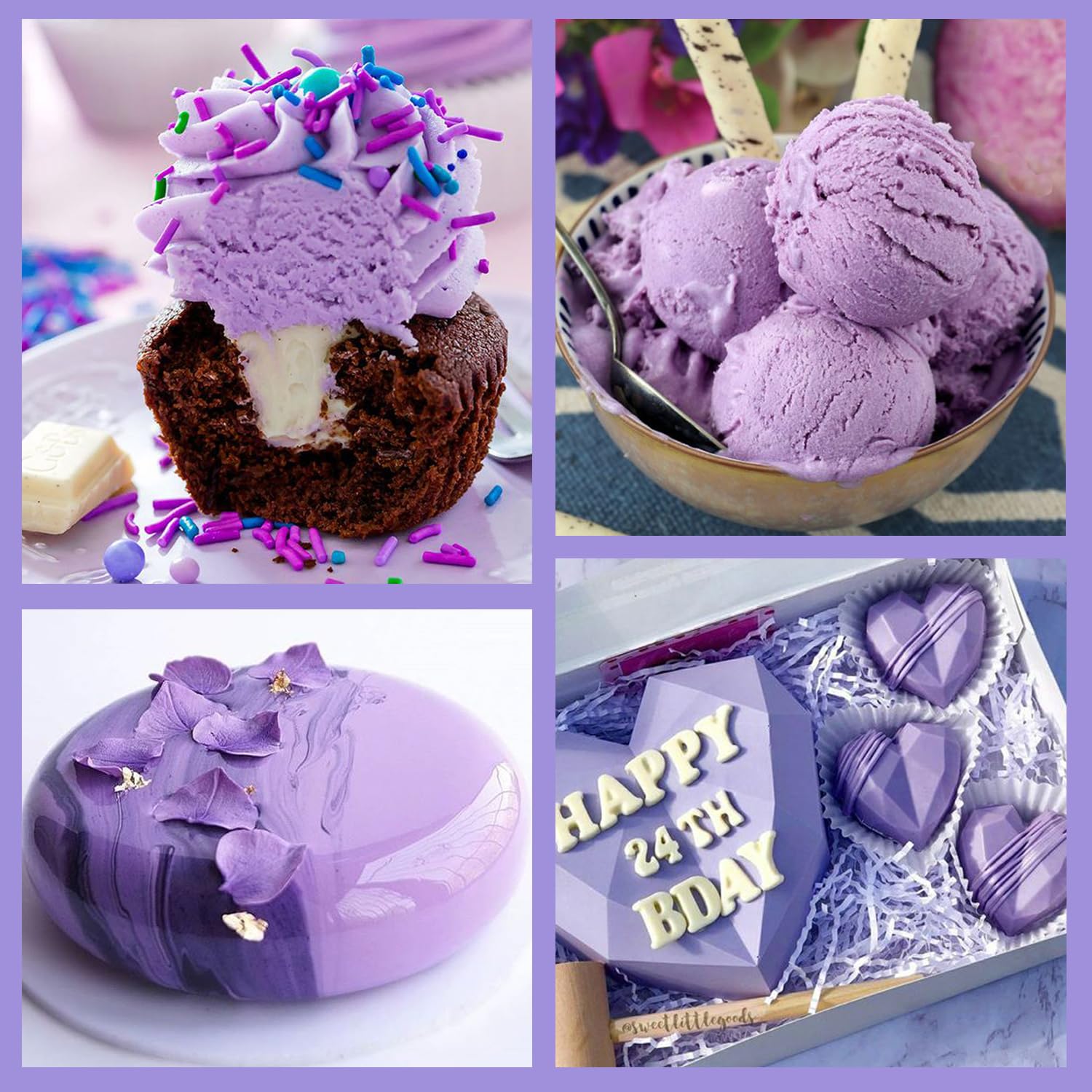 • Q: Can I use this light violet food coloring for other baking applications? A: Yes, this light violet oil-based food coloring is versatile and can be used in various baking applications such as cakes, cupcakes, macarons, buttercream, and fondant. However, it is not recommended for use in water-based recipes or beverages.