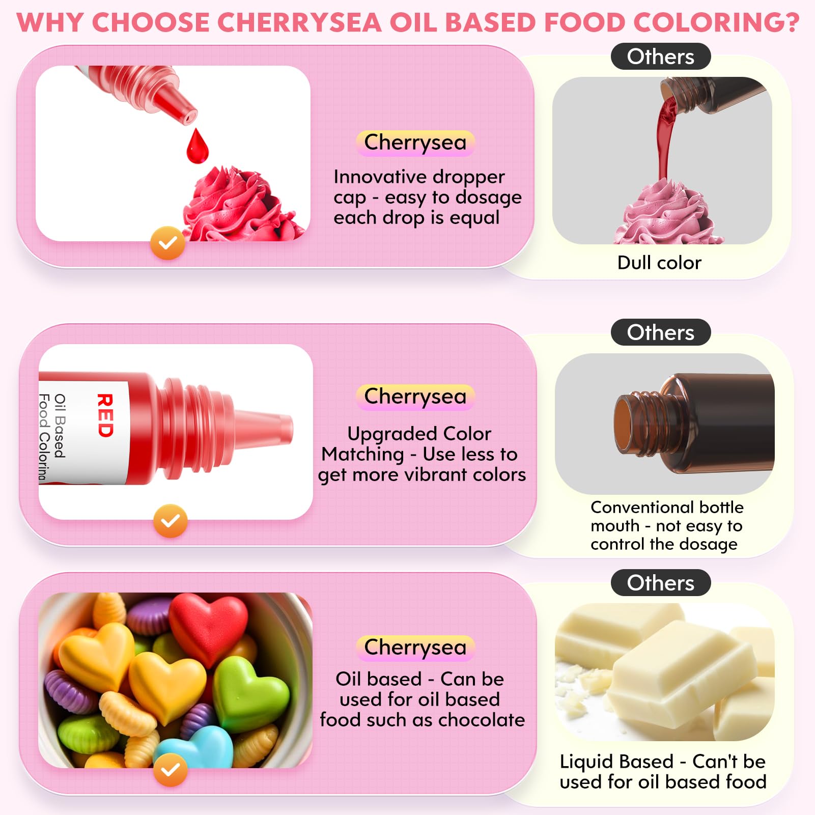 Rainbow Oil Food Coloring For Chocolate Decorating - Vivid Oil Based Food Coloring Are Specially Made By The Dessert Master,Every Color Has Its Ingenuity.Our Food Color Set Includes : Red,Orange,Yellow,Green,Teal, Blue,Purple. This Rainbow Daily Color Palette Can Improve The Usage Rate Of Baking Enthusiasts | Best Oil Based Baking Food Coloring Set - Different From Water-Soluble And Gel Based Food Dye, This Oil-Based Based Is Specially Designed For Chocolate, Butter, Mousse, And Candy. | Gluten Free Safe Edible Dye - Cherrysea Food Dye Is Vegan Friendly, Adult And Kid Friendly. Toxic-Free, Dairy-Free, Nut-Free, Sugar-Free And Gluten-Free. It Is Approved By Msds And Safe Ingredients That Meet The Latest Highest Food Standards In 2025. Even After Baking And Freezing, The Liquid Food Color Solid Effect Remains Vivid And Lively | Wide Application - This Vivid Oil-Based Food Color Set Can Be Used In A Wide Range Of Our Daily Life.Use It To Decorate Your Cake, Icing, Frosting, Fondant, Batter, Cookie, Cupcakes , Add More Fun And Atmosphere To Your Holidays,Valentine'S Day, Easter Day, Christmas, Halloween, Thanksgiving Day, Children'S Day, Mother'S Day, Wedding Anniversary Etc | What You Get - 1* Exquisite Packaging, 7 Colors *6Ml Edible Coloring Set (Each Bottle 0.25 Fl.Oz).If You Have Any Questions About This Macaron Food Coloring, Including How To Use And Mix Coloring, Please Contact Via Amazon | What You Get - 1* Exquisite Packaging, 7 Colors *6Ml Edible Coloring Set (Each Bottle 0.25 Fl.Oz).If You Have Any Questions About This Macaron Food Coloring, Including How To Use And Mix Coloring, Please Contact Via Amazon