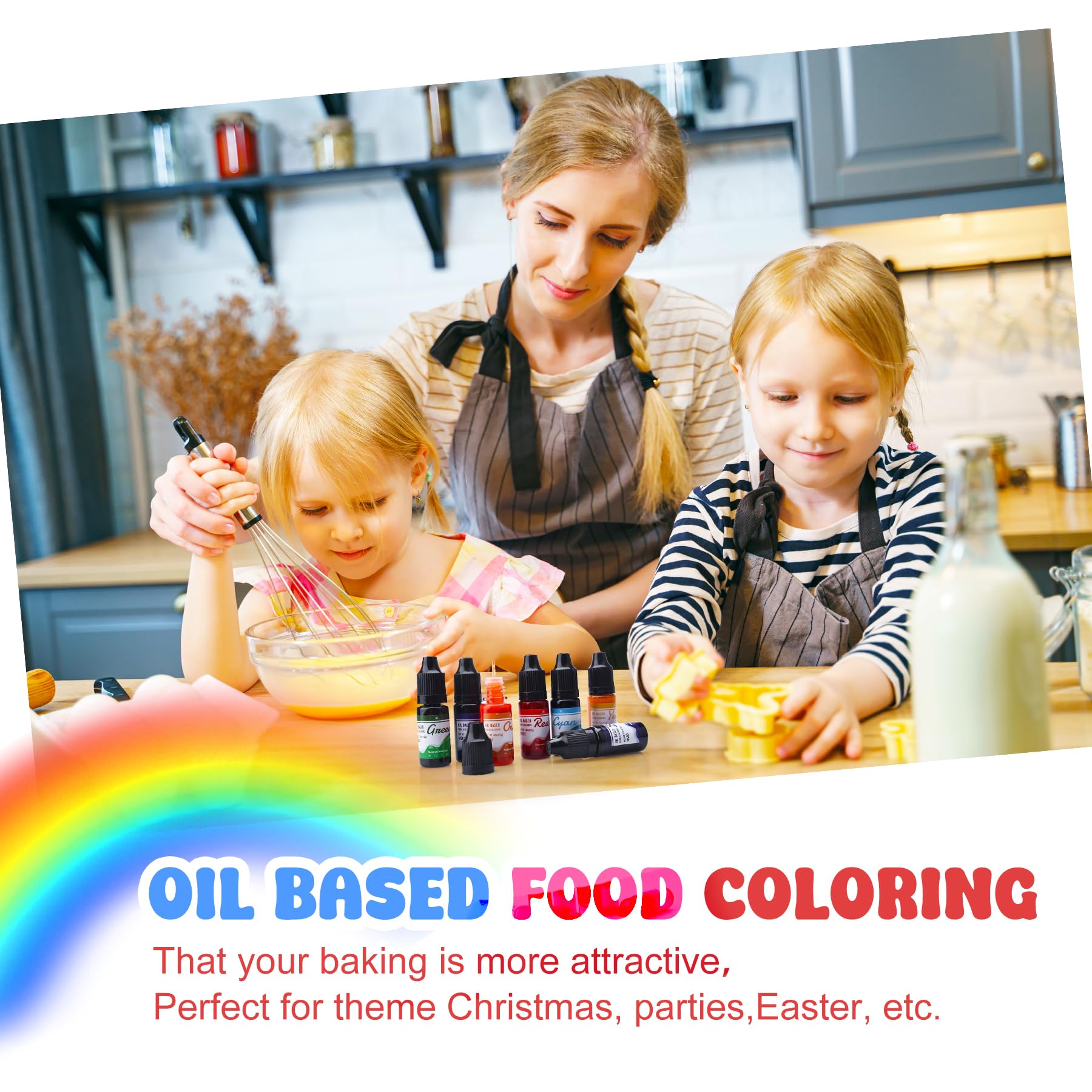 - Q: What types of projects can I use this food coloring for? A: Our versatile oil-based food coloring is ideal for a variety of projects, including decorating cakes, cookies, and cupcakes, as well as making DIY slime, play dough, soaps, and bath bombs.