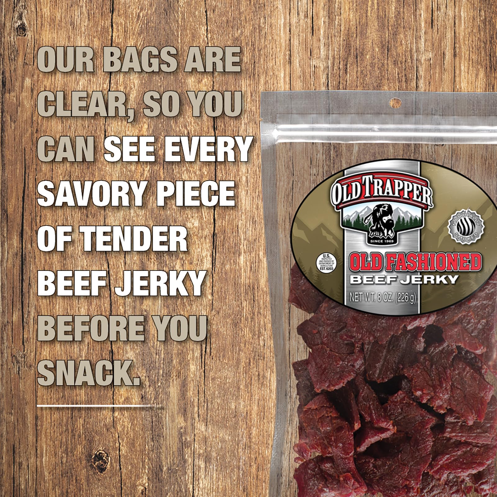 Old Trapper Old-Fashioned Beef Jerky Delivers Authentic Flavor In Every Bite. We Slow-Smoke Lean Beef Over Natural Wood And Add Just A Touch Of Brown Sugar For A Subtle Sweetness That Balances The Savory, Smoky Profile. This Eight-Ounce Bag Gives You Plenty Of This Classic Snack To Enjoy Whenever Hunger Strikes.