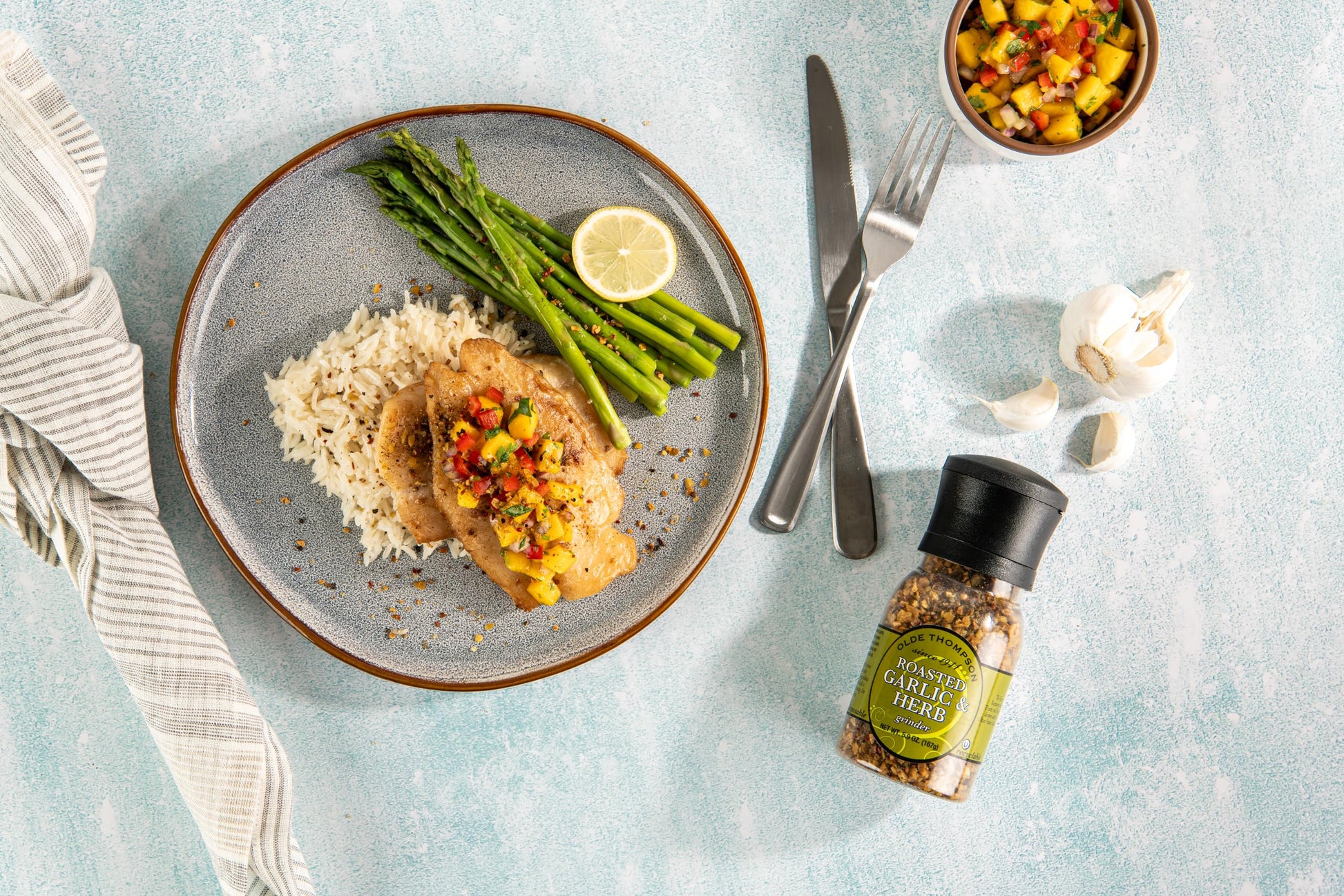 Q: How do I use the Roasted Garlic and Herb Grinder?A: Simply twist the grinder to release the medium-course grind of roasted garlic and herb seasoning. It's perfect for adding flavor to fish, chicken, vegetables, and more.