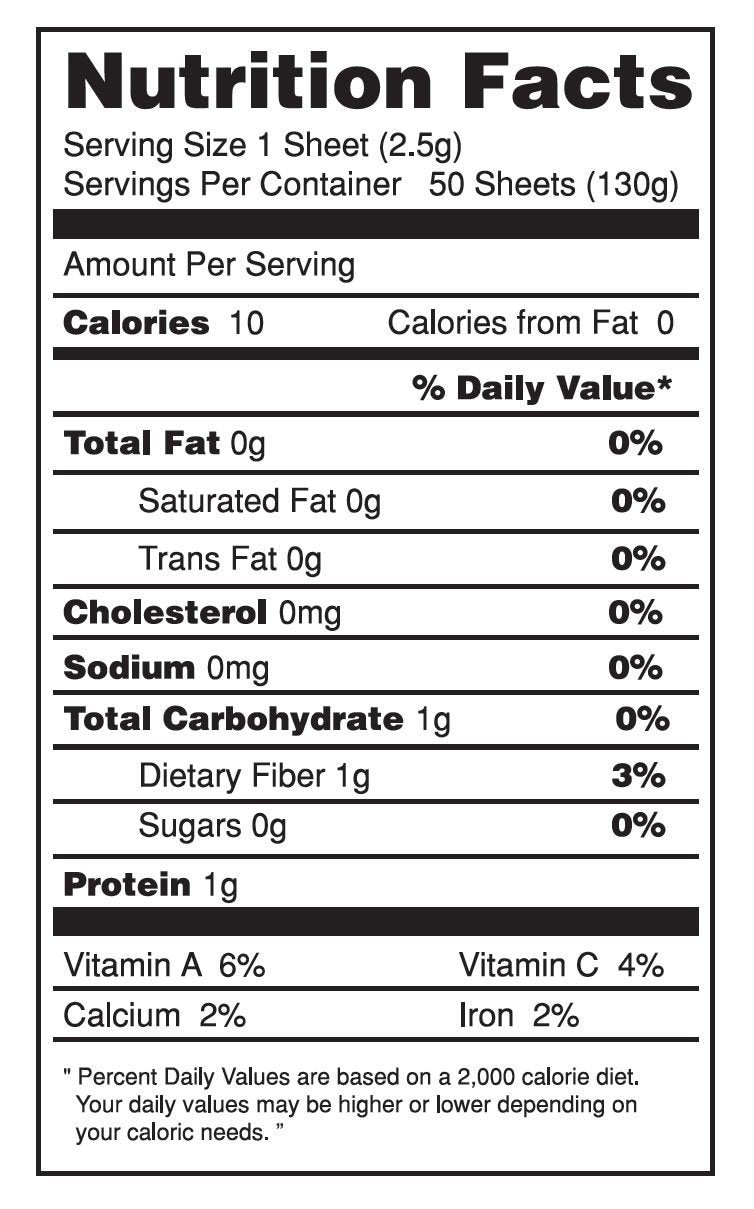 Q: What are the health benefits of consuming ONE ORGANIC Sushi Nori?A: ONE ORGANIC Sushi Nori is a low-calorie superfood that is rich in vitamins, minerals, and amino acids, making it a great addition to a healthy diet.