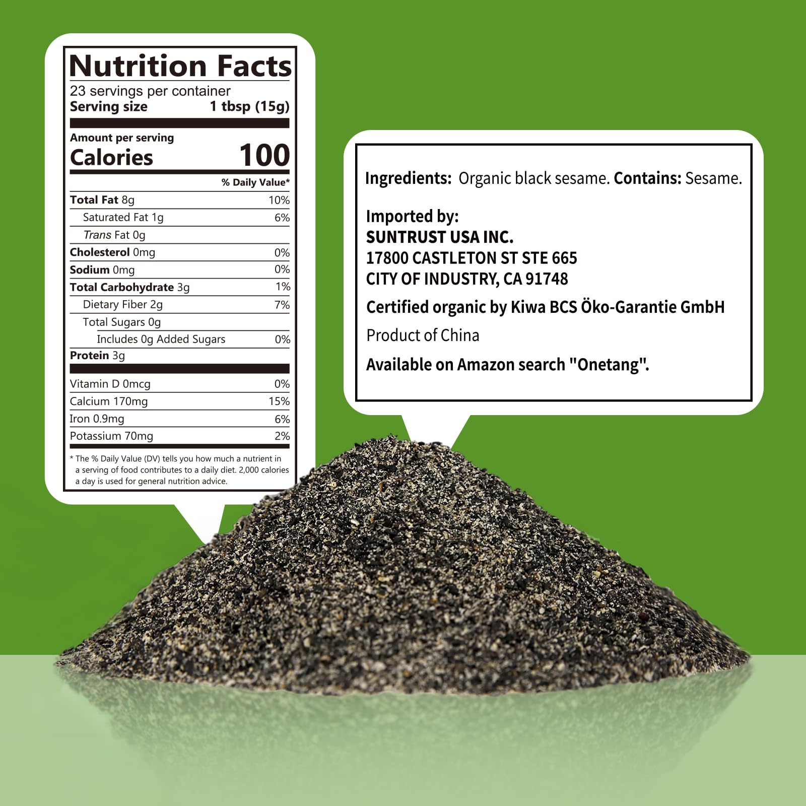 - Q: How can I incorporate black sesame powder into my meals? A: You can easily add ONETANG Organic Black Sesame Powder to various dishes including cereals, salads, rice, noodles, and sushi rolls. It can also be mixed into yogurt or smoothies for added flavor, or used as a garnishment on foods like biscuits, crackers, and bagels.