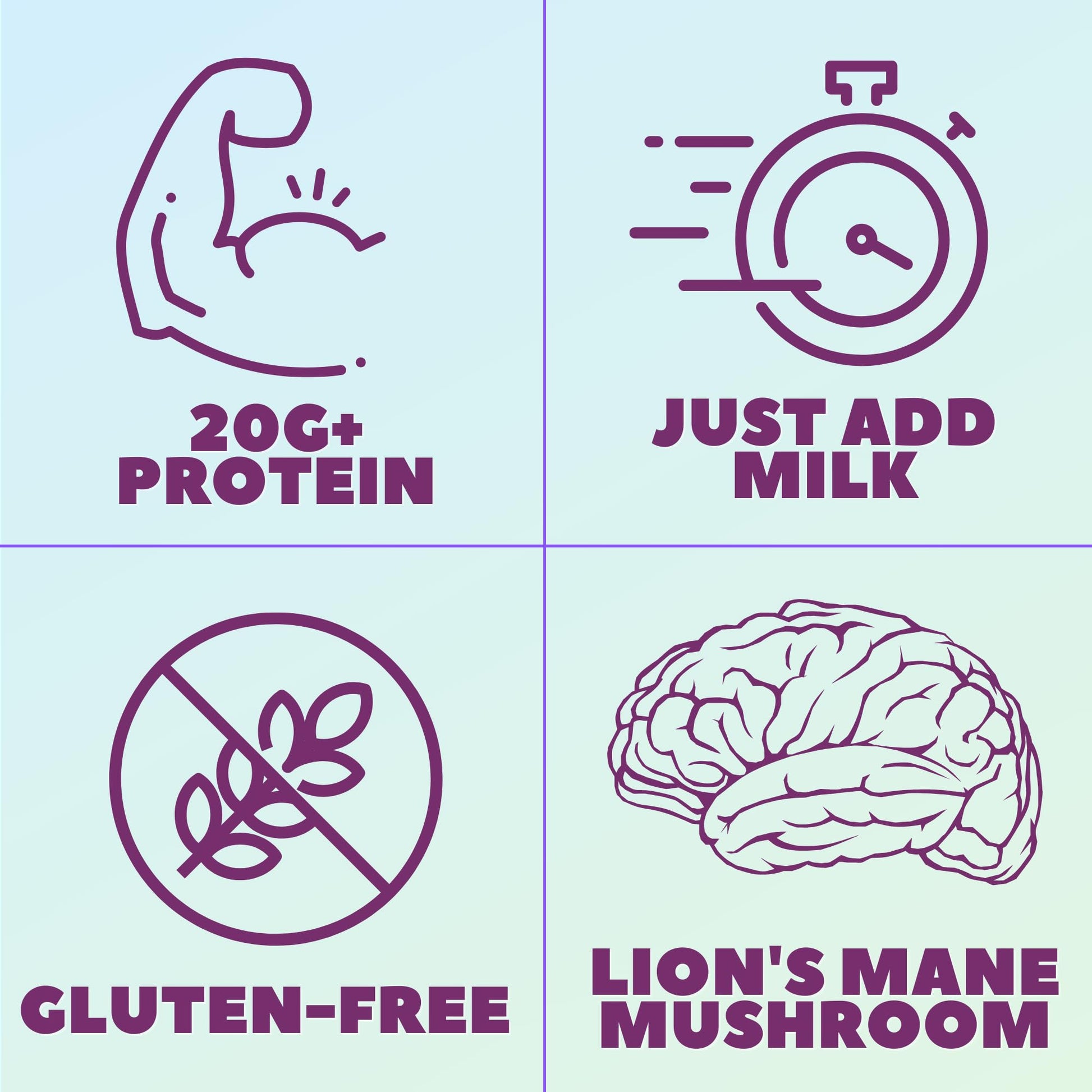 We Werent Mad At Breakfast, Just Disappointed. So We Transformed Boring Morning Oatmeal Into Nutrient-Dense Protein Oats, With Decadent Flavors, Satiating High-Protein, And Only 290-340 Calories That Is Ready To Go As You Walk Out The Door. A Perfectly Balanced Meal That Hits All Your Cravings! With Flavors Like Rocky Road, Cereal Milk, Vegan Blueberry Muffin And More, Trust Us, These Arent Your Grandmas Oats. All Packs Of Ono Have 20G+ Of Protein In Every Serving, To Keep You Full And Fueled And Are Gluten-Free. We Also Have Fully Vegan And Plant-Based Options, If Whey Is Not Your Thing. Ono Takes Less Than 5 Seconds To Make, Just Add Your Choice Of Milk Or Water Directly To The Bag, And Boom! If You Prefer Your Oats Hot, Heat Your Choice Of Milk And Mix With Ono In A Separate Bowl. Steep For 5 Minutes Covered. Yeppp, Thats It! Such An Easy And Quick Breakfast! And Our Resealable Bags Make It Perfect To Take With You On The Go Anywhere. Perfect For Breakfast, A Snack, Traveling, On The Go, Camping, Hiking, Pre-Workout, And Post-Workout. Ono Is Crafted With Quality, Delicious Ingredients Such As Organic Gluten Free Oatmeal, Chia Seeds, Lions Mane Mushroom For A Perfect Morning Boost, Fruits, And More. Organic & Gluten-Free Rolled Oats Are A Complex Carb That Is High In Fiber And Are Also A Little Higher In Protein Than Most Other Grains. Oats Are Gluten-Free And Loaded With Vitamins, And Antioxidants. Organic Chia Seeds Are Full Of Beneficial Nutrients. They Are A Great Source Of Omega-3 Fatty Acids, Fiber, Antioxidants, Iron, And Calcium. Includes Lions Mane Mushroom Which Has Shown To Improve Memory, And Cognition, And Increases Focus. Our Goal Is To Make Mornings Better With Flavors That Make People Excited For Breakfast As They Used To Be When They Were Kids But Fits Their Busy Schedules And Nutritional Preferences As Adults! Breakfast Is About To Be Your Favorite Meal With Our Crazy Fun Flavors Of High Protein Overnight Oats!