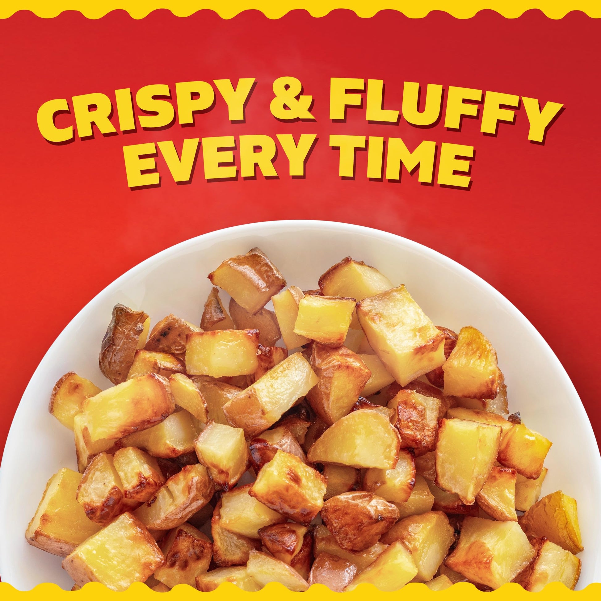 Crispy outside, fluffy inside, every time. Deliciously predictable, thats Ore-Ida. Ore-Ida Diced Hash Brown Potatoes make it easy to enjoy diced hash browns at home. Our gluten-free diced hash browns offer a golden, crispy texture to make your next family breakfast a success. Toss diced potatoes in a skillet with a little oil to cook them according to package instructions for satisfyingly crispy results. A classic potato option, our frozen hash browns are perfect as a breakfast side dish or in a casserole. Our breakfast potatoes come sealed in a 32-ounce bag to help lock in flavor. Ore-Ida believes that taste and quality matter and it has since 1952. Thats why we work tirelessly to bring you and your family perfect-tasting potatoes.