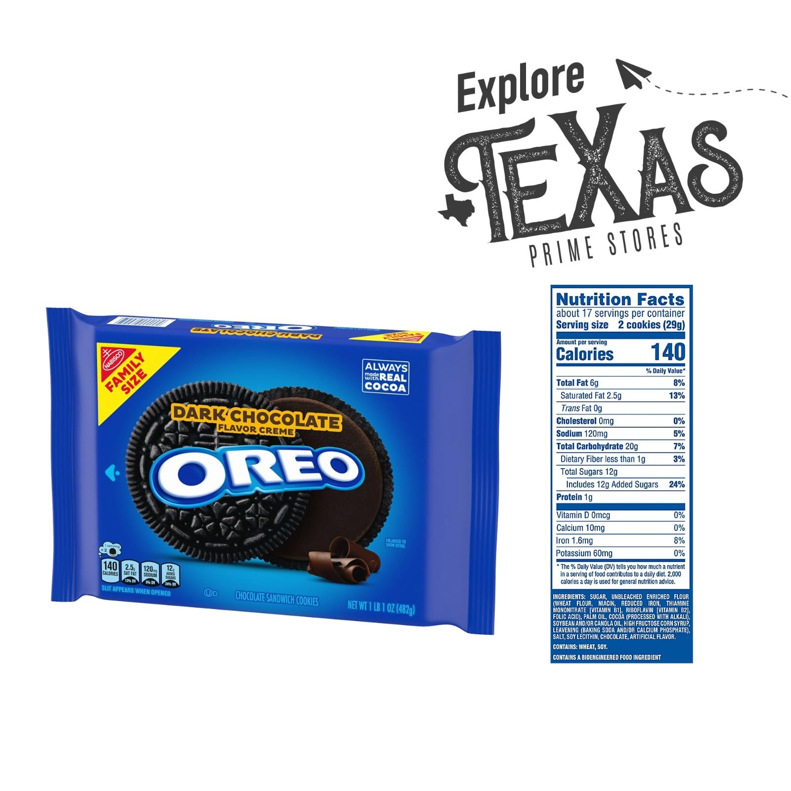 Q: What makes OREO Flavored Dark Chocolate Sandwich Cookies unique?A: OREO Flavored Dark Chocolate Sandwich Cookies feature a delicious dark chocolate-flavored creme filling sandwiched between two classic chocolate wafers, providing a unique twist on the traditional OREO taste.