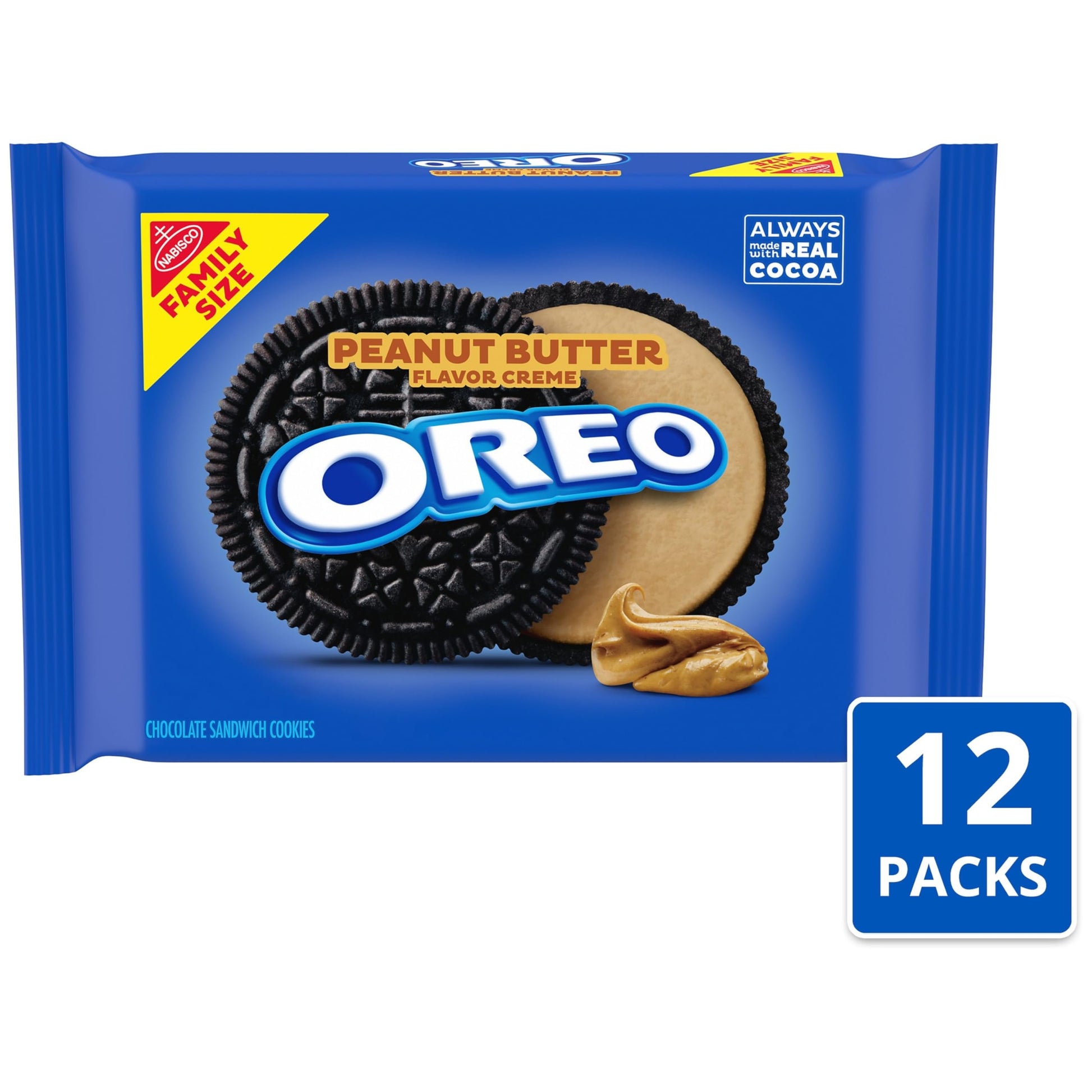 • Q: What is the size of the OREO cookie pack? A: This product comes in a family size pack containing twelve 17 oz packs of OREO Peanut Butter Creme Chocolate Sandwich Cookies, making it ideal for gatherings, parties, or stocking up for lunch snacks.