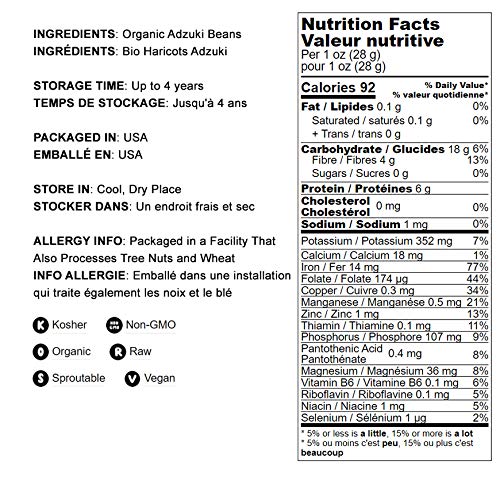 - Q: What are the health benefits of Organic Adzuki Beans? A: Organic Adzuki Beans are a great source of essential nutrients including magnesium, zinc, iron, copper, manganese, potassium, fiber, and B Vitamins such as niacin, thiamin, and riboflavin. These nutrients contribute to overall health, supporting a balanced diet.