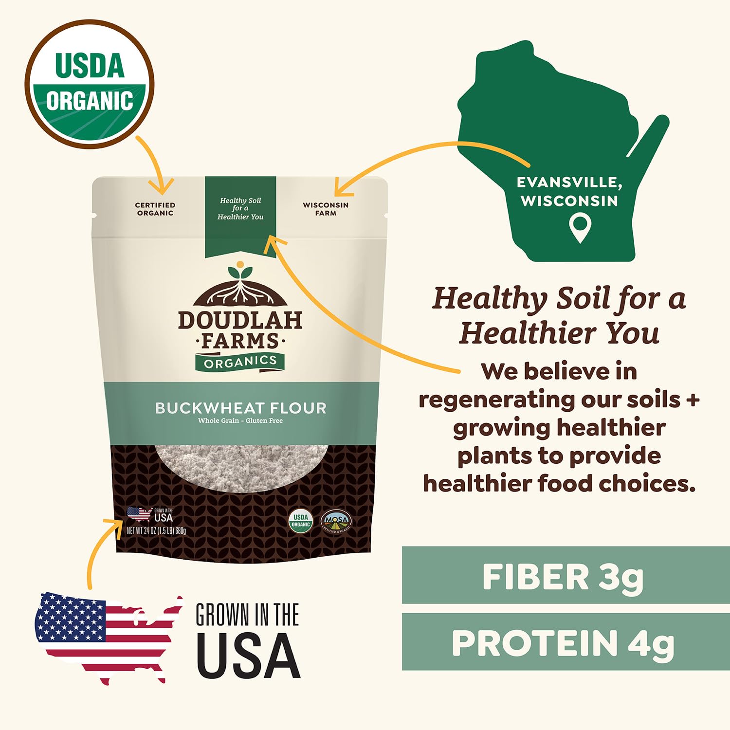 - Q: What is Organic Buckwheat Flour and how is it different from regular flour? A: Organic Buckwheat Flour is a gluten-free flour made from 100% USDA Certified Organic, non-GMO buckwheat. Unlike regular wheat flour, it is rich in protein, fiber, and essential minerals, making it a nutritious alternative for those seeking gluten-free options.