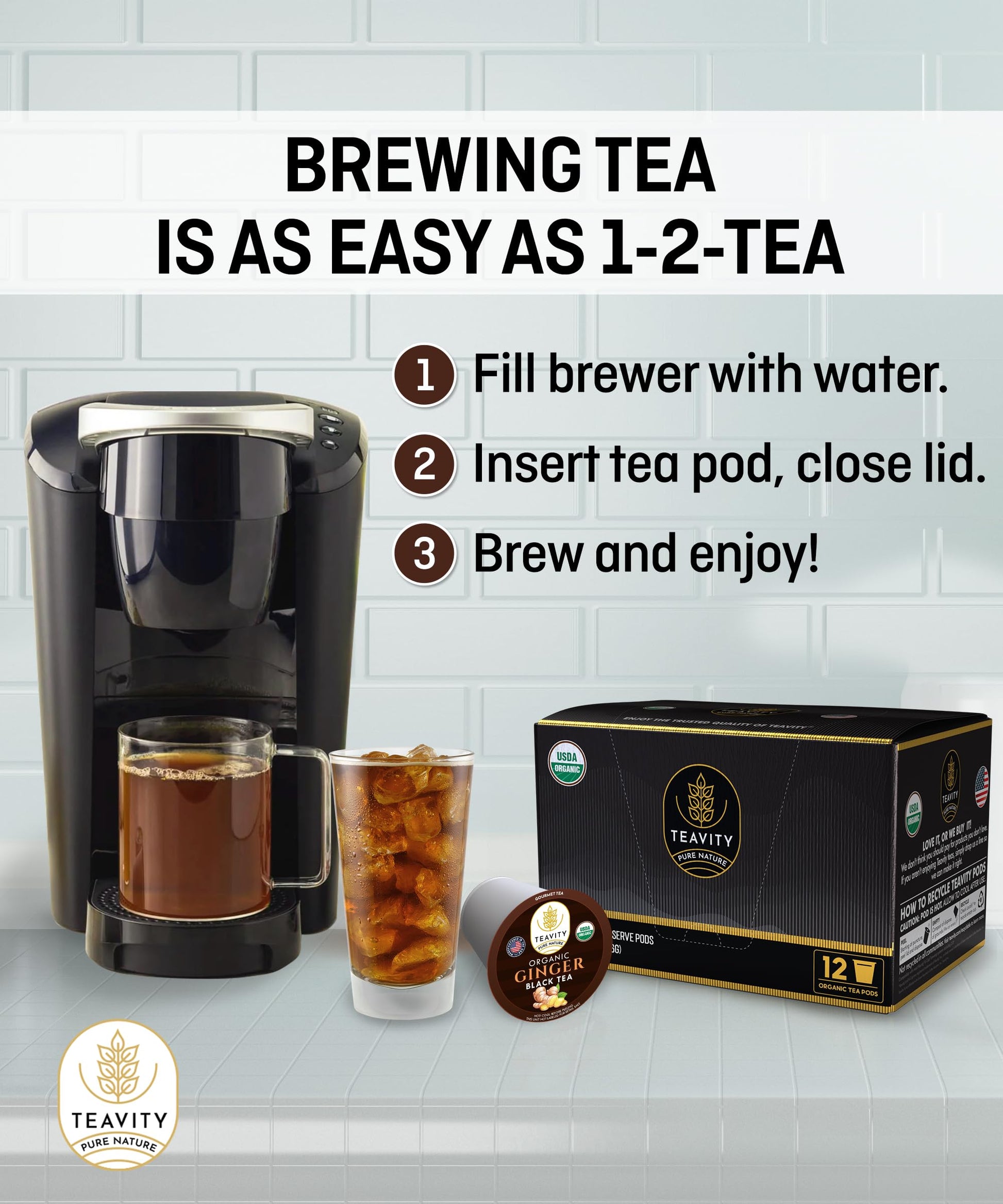 Organic Ginger Tea Pods For Keurig - Naturally Caffeinated Organic Black Tea. Unsweetened Ginger Black Tea For Hot Tea Brewing Or Iced Tea. Rich And Flavorful Organic Black Tea Pods For Keurig.Perfectly Balanced To Give You The Flavor You Enjoy Without Overpowering Your Taste Buds. | Hand-Picked From The Finest Gardens Of Sri Lanka All Of Teavity