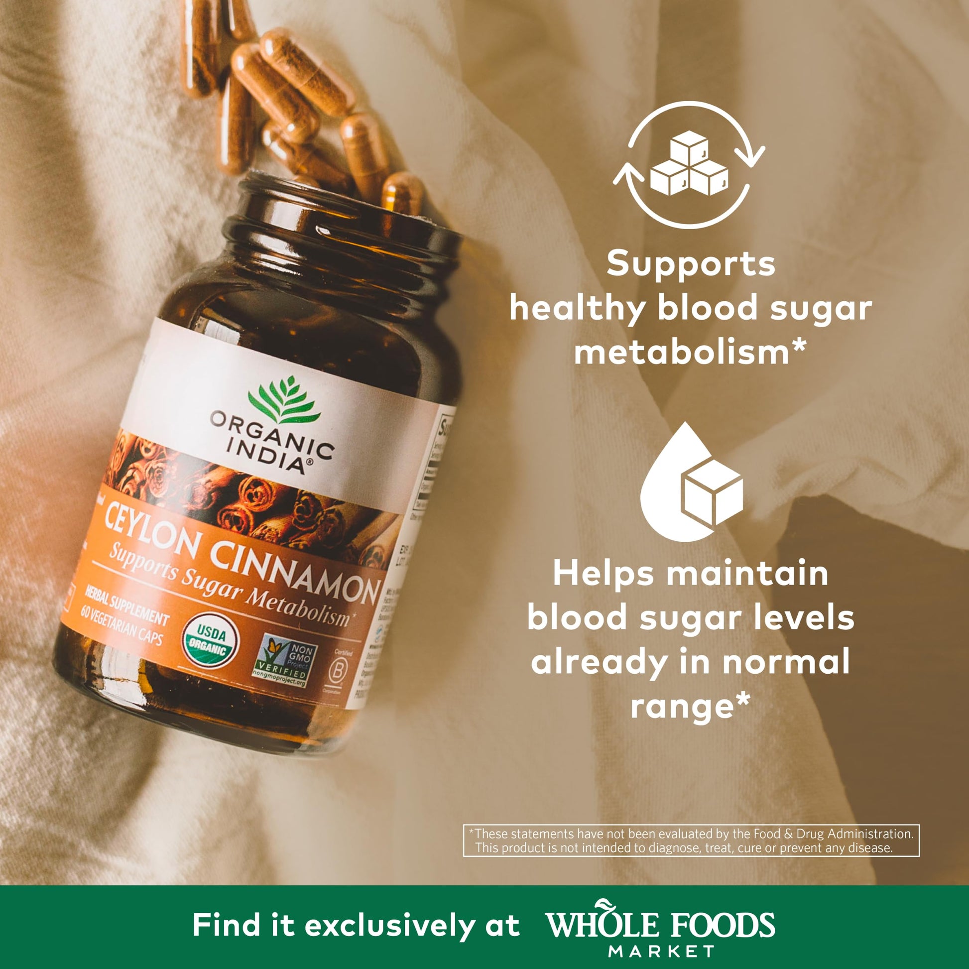 - Q: What are the main health benefits of taking ORGANIC INDIA Ceylon Cinnamon Supplements? A: ORGANIC INDIA Ceylon Cinnamon Supplements are known to provide antioxidant activity and support healthy digestion. They are made from organic Ceylon cinnamon bark, recognized for its natural health benefits.