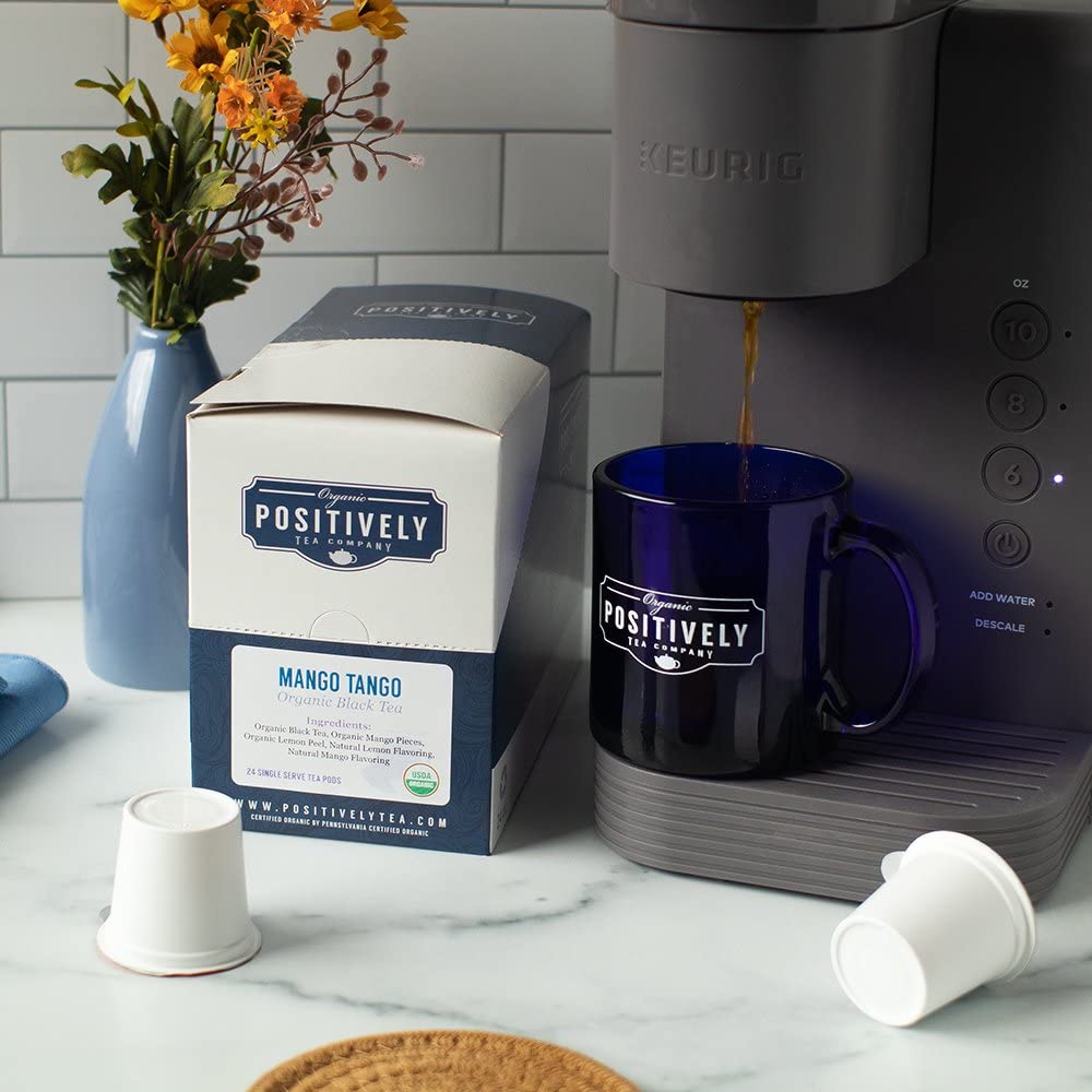 Q: Is this tea compatible with K-Cup brewers?A: Yes, Mango Tango Black Tea comes in K-Cup compatible pods, making it easy to brew a delicious cup of tea using your K-Cup brewer.