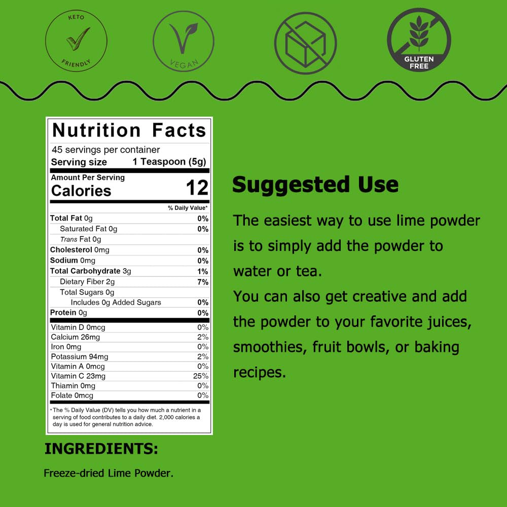 Orgnisulmte Lime Juice Powder, 8 Oz, Fresh Lime Juice Freeze Dried Powder Filler Free, Rich In Natural Vitamin C, Great Flavor For Soda, Baking And Cooking 227G