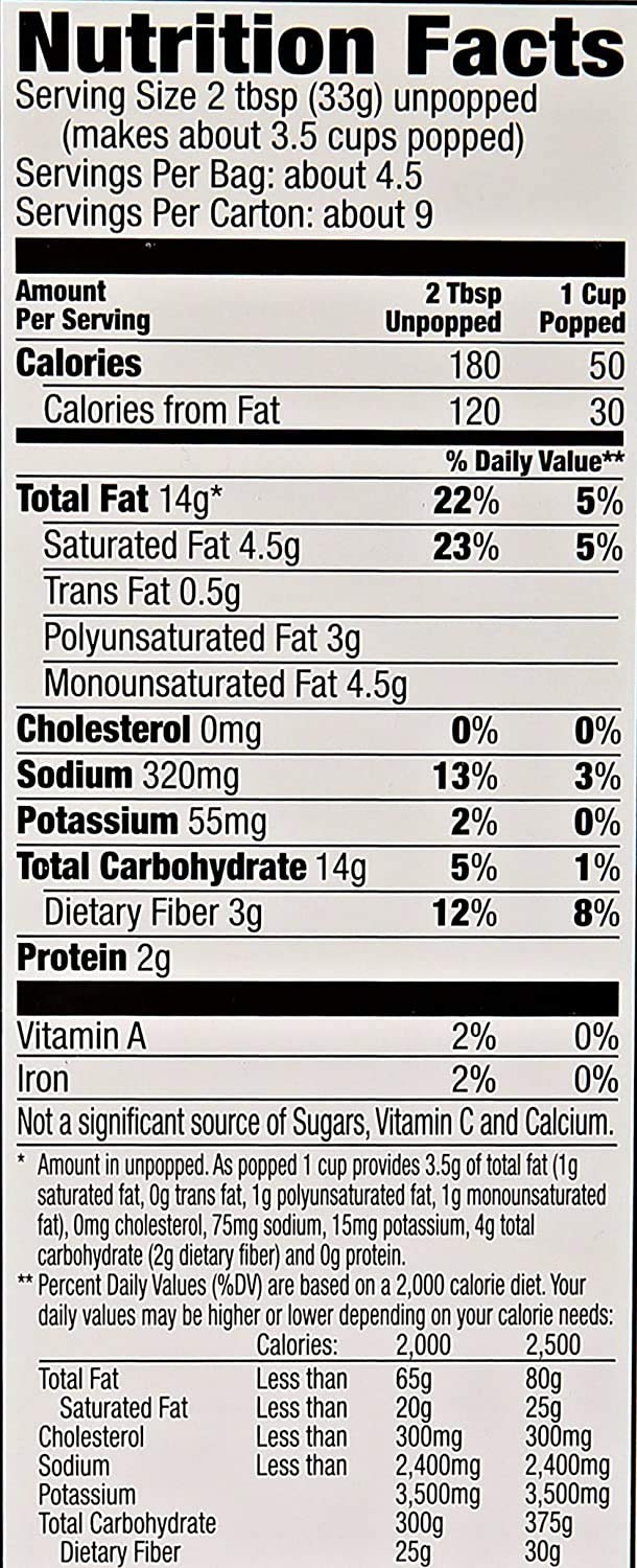 - Q: What are the dimensions and weight of the product? A: The Orville Redenbacher's Pour Over Movie Theater Butter Popcorn box measures 2.0 inches in length and 6.3 inches in width, weighing approximately 2.89 pounds for the pack, making it easy to store and handle.