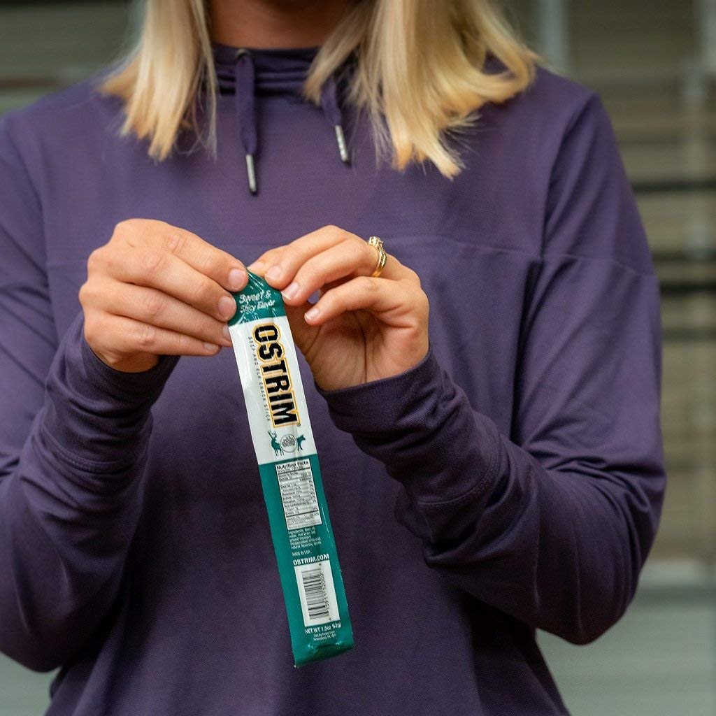 • Q: Are OSTRIM Jerky Snack Sticks suitable for on-the-go consumption? A: Yes, OSTRIM Jerky Snack Sticks are conveniently packaged and ready-to-eat, making them perfect for on-the-go snacking. Each stick provides 14 grams of protein, making it an ideal snack for the gym, hiking, or any busy lifestyle.