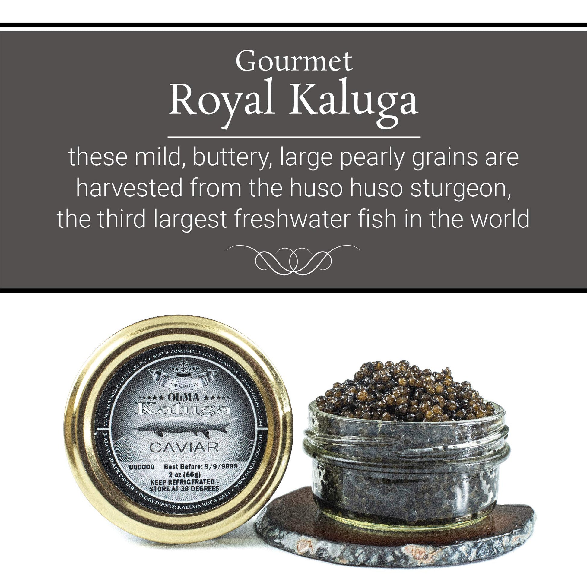 Overnight Guaranteed - Olma Kaluga Sturgeon Black Caviar- Large Pearly Grains, Smooth Flavor, Superior Grade- 2 Oz/56 G