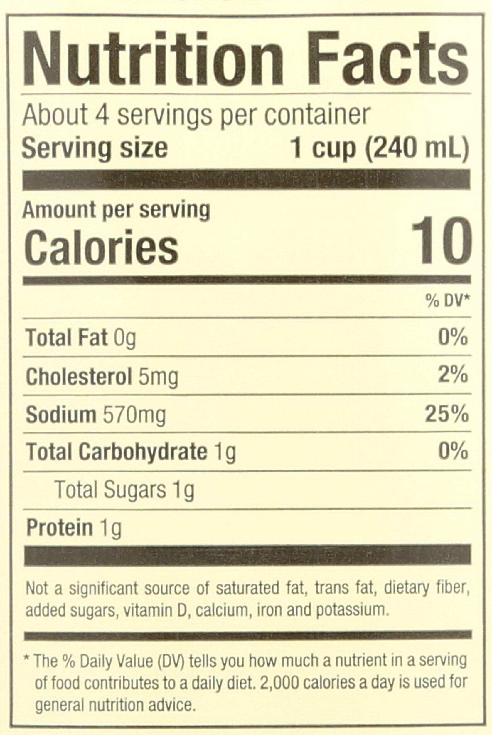 Q: How many servings are in a carton of Pacific Foods Chicken Broth?A: Each carton of Pacific Foods Chicken Broth contains 32 fluid ounces and provides four servings, with each serving containing only 10 calories.