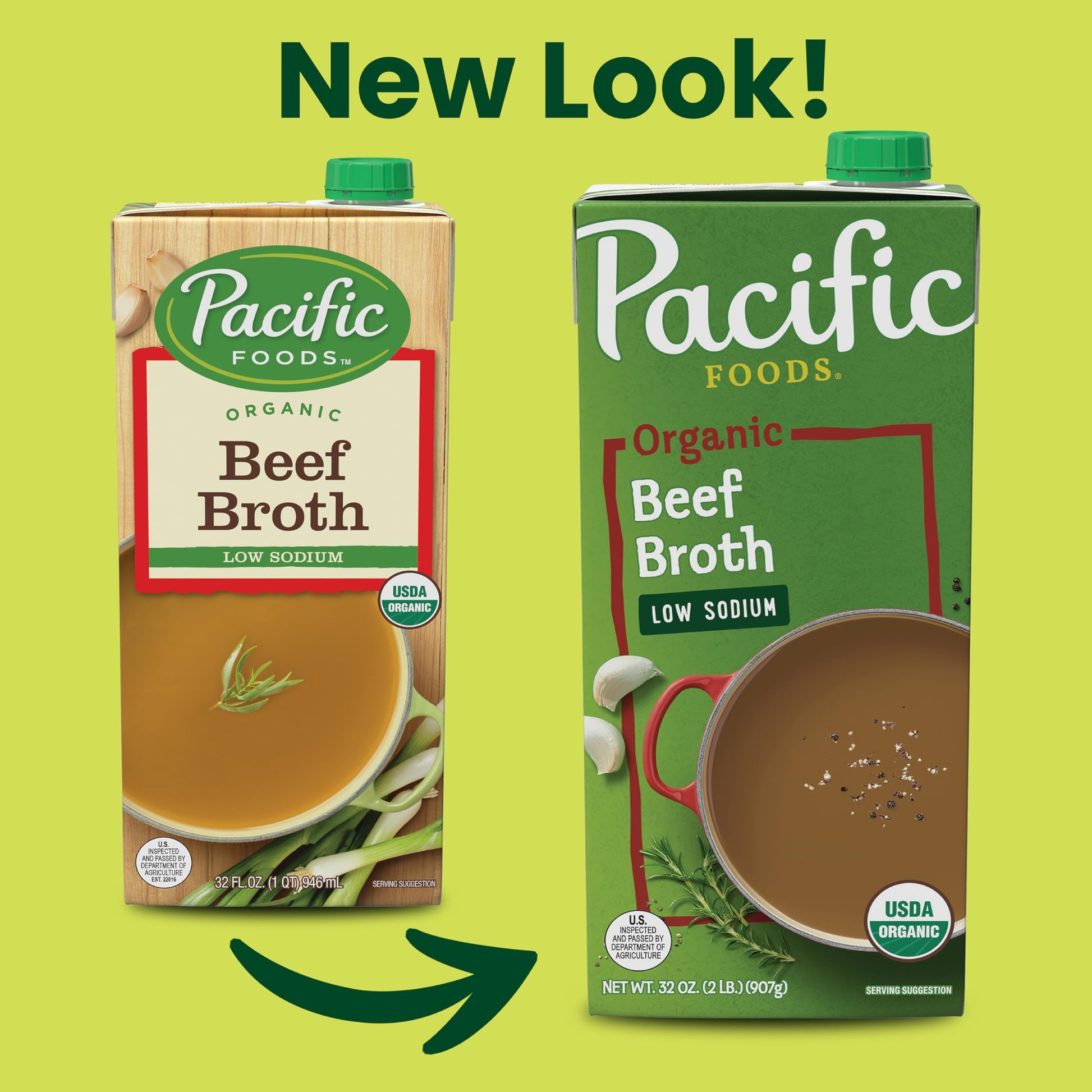 Effortlessly craft extraordinary meals with Pacific Foods Low Sodium Organic Beef Broth. We slow-simmer humanely raised organic beef with onions, garlic and a touch of sea salt for a savory beef broth with 140mg of sodium per serving. Easier to prepare than beef bouillon, this low sodium broth is a delectably simple and nuanced canvas for your favorite dishes. Use it in any recipe that calls for low sodium beef broth, beef stock or water. It’s great as a soup base and for crafting delectable stews and ramen. It also elevates gravies, sauces and marinades, and it enhances the cooking of grains, protein and veggies. Each 32 oz recyclable carton contains approximately 4 servings of our gluten free and USDA Certified Organic broth. In addition to using it for cooking, you can enjoy this savory beef broth on its own as a simple yet flavorful beef soup. Customize it with your favorite toppings, or pair it with a sandwich, salad or wrap. In addition to beef broth, Pacific Foods also offers chicken broth, turkey broth, vegetable broth and more. At Pacific Foods, we're dedicated to making the most nourishing foods possible from simple, carefully sourced ingredients.