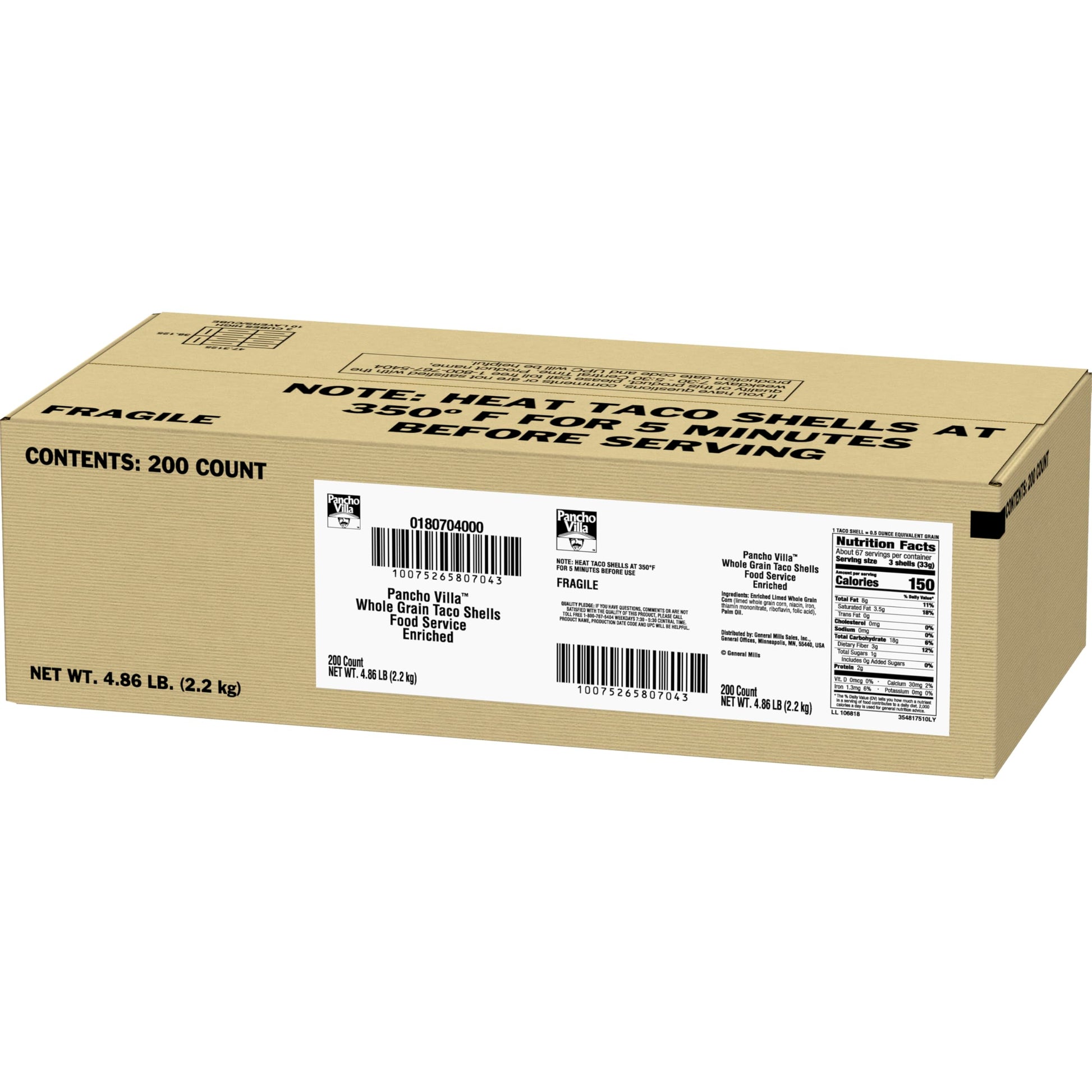 Q: How many taco shells are included in a bulk case?A: Each bulk case of Pancho Villa Taco Shells contains 200 taco shells, making it ideal for large gatherings, buffets, or cafeterias.