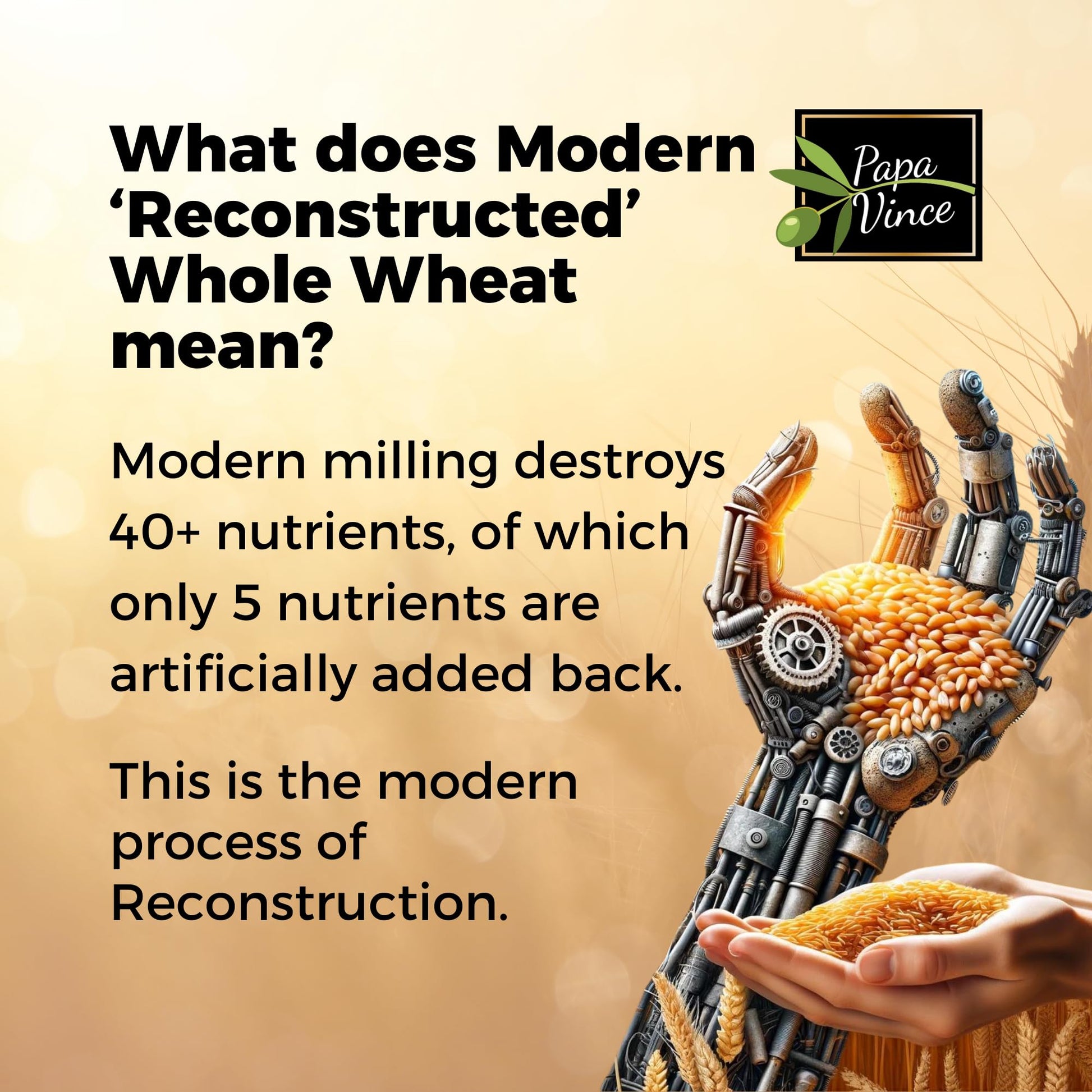 • Q: What makes Papa Vince spaghetti different from regular pasta? A: Papa Vince spaghetti is made from heirloom ancient grains and undergoes a cold-stone milling process, preserving the wheat's natural nutrients. Unlike conventional pasta, it is non-GMO, non-enriched, and utilizes a traditional slow-drying method to maintain its nutritional integrity and flavor.