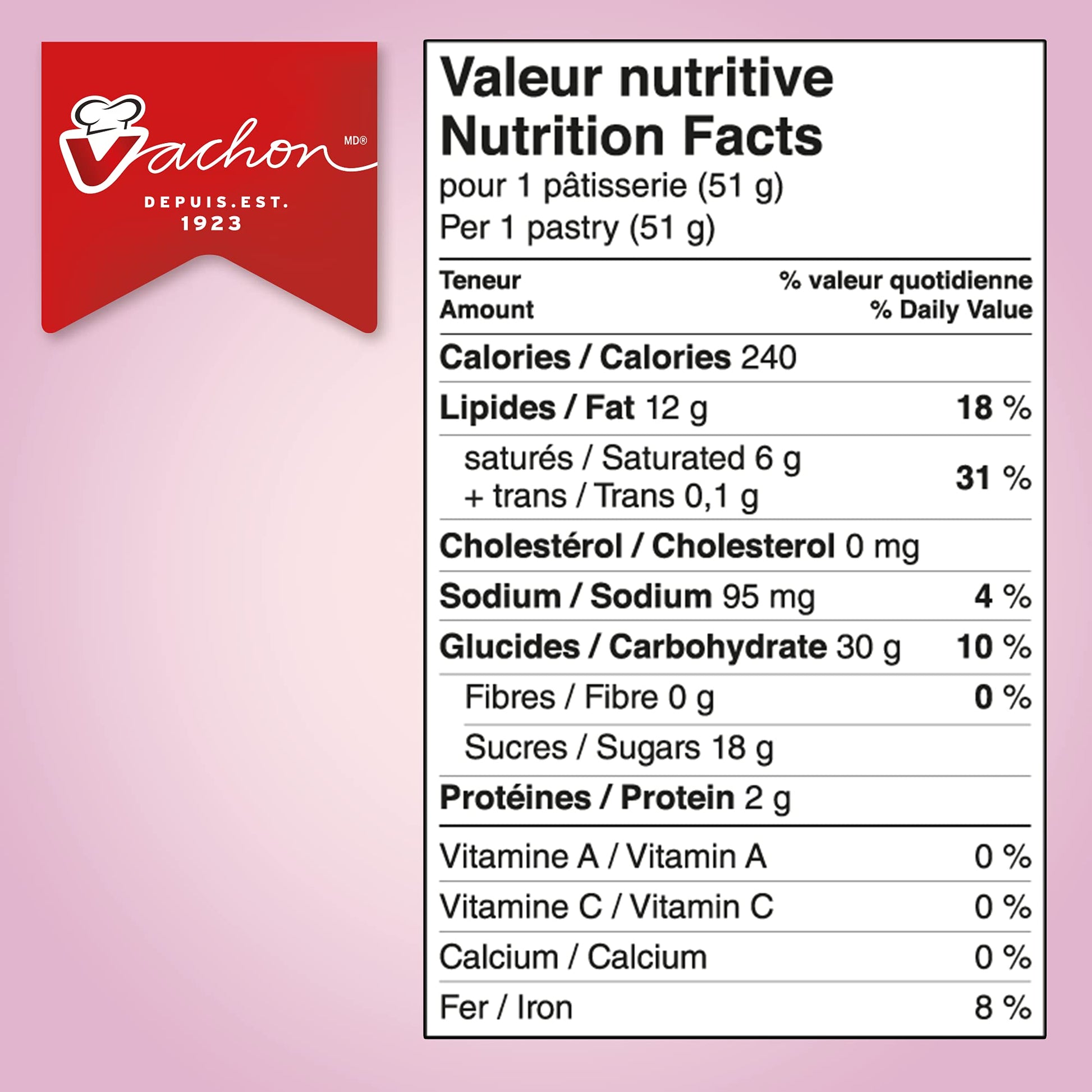 Open up this flaky pastry and you will discover a creamy filling and three fruit flavored confection tempting you with their sweet and fruity aromas. From the Kitchen to the Delivery Trucks, Vachon Bakery has been a true family operations since the start in 1923. Enjoy the Passion Flakie Pastries for a light and luscious snack. Light Sweet Pastries filled with sweet cream and a strawberry, raspberry, and blueberry flavored fruity confection. Box of 6 individually wrapped units. Source of energy providing at least 100 calories per serving. THREE FRUIT PASSION FLAKIE. 305g/10.8oz. Box. Imported and Made In Canada
