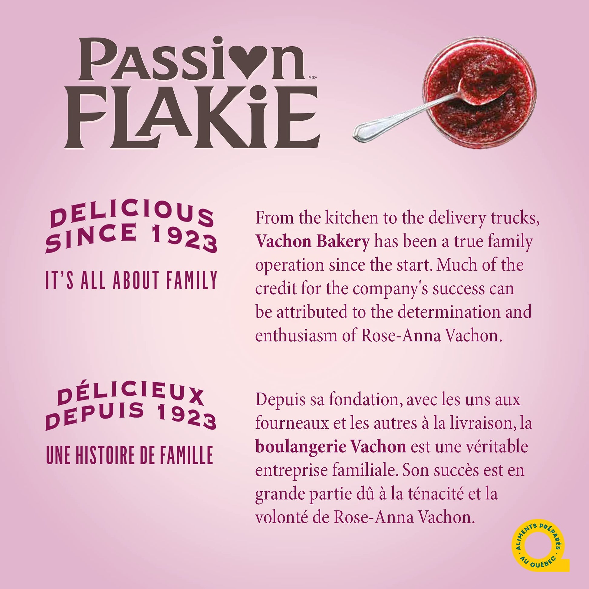 Q: Where are Passion Flakie pastries made?A: Passion Flakie pastries are imported from Quebec, Canada, and are produced by Vachon Bakery, a family-operated business since 1923.