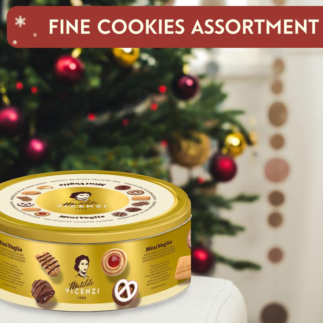 Q: What flavors are included in the Pasticceria Matilde Vicenzi Minivoglie Butter Cookies assortment?A: The assortment features a delightful variety of flavors including citrus fruits, spicy cinnamon, delicate hazelnut, chocolate shortbread with a hint of cherry, and classic shortcrust pastries filled with cocoa and vanilla cream.