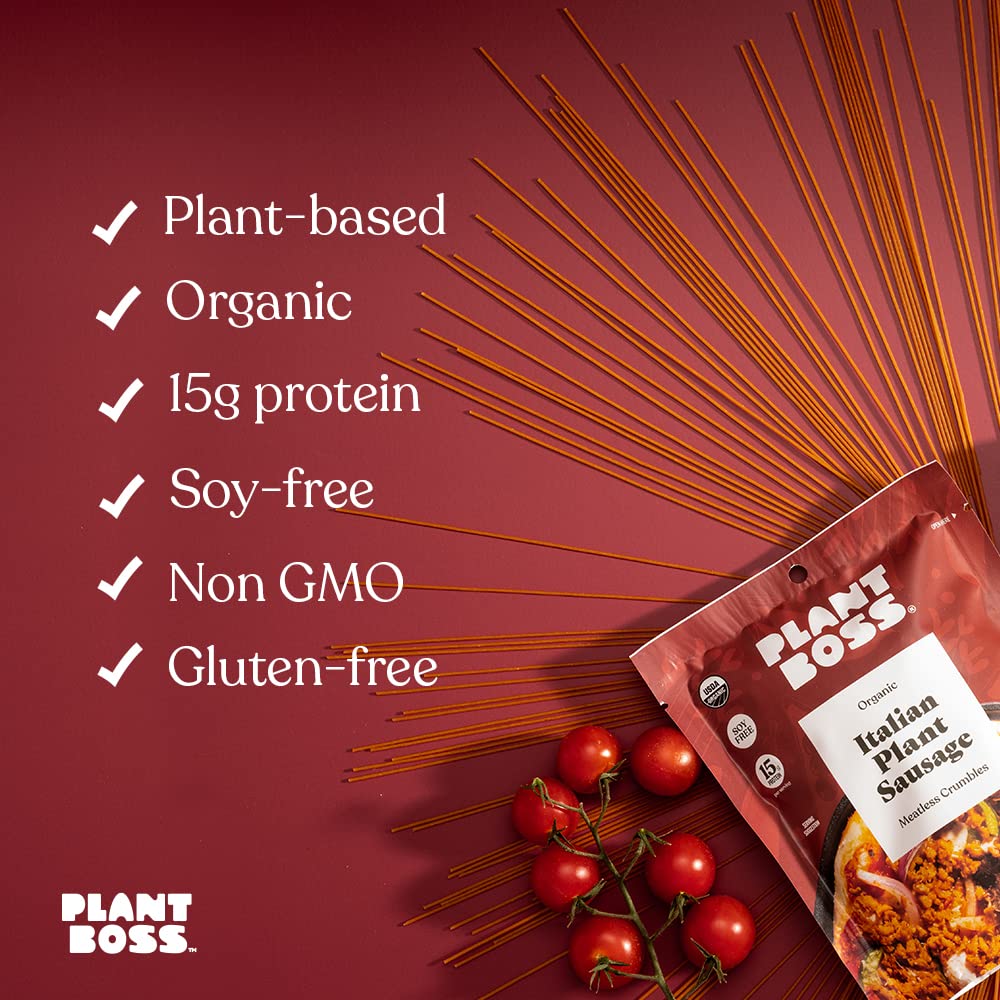 Q: Are Plant Boss meatless crumbles gluten-free and soy-free?A: Yes, Plant Boss Italian Plant Sausage crumbles are both gluten-free and soy-free, providing a safe option for those with gluten sensitivities or soy allergies.