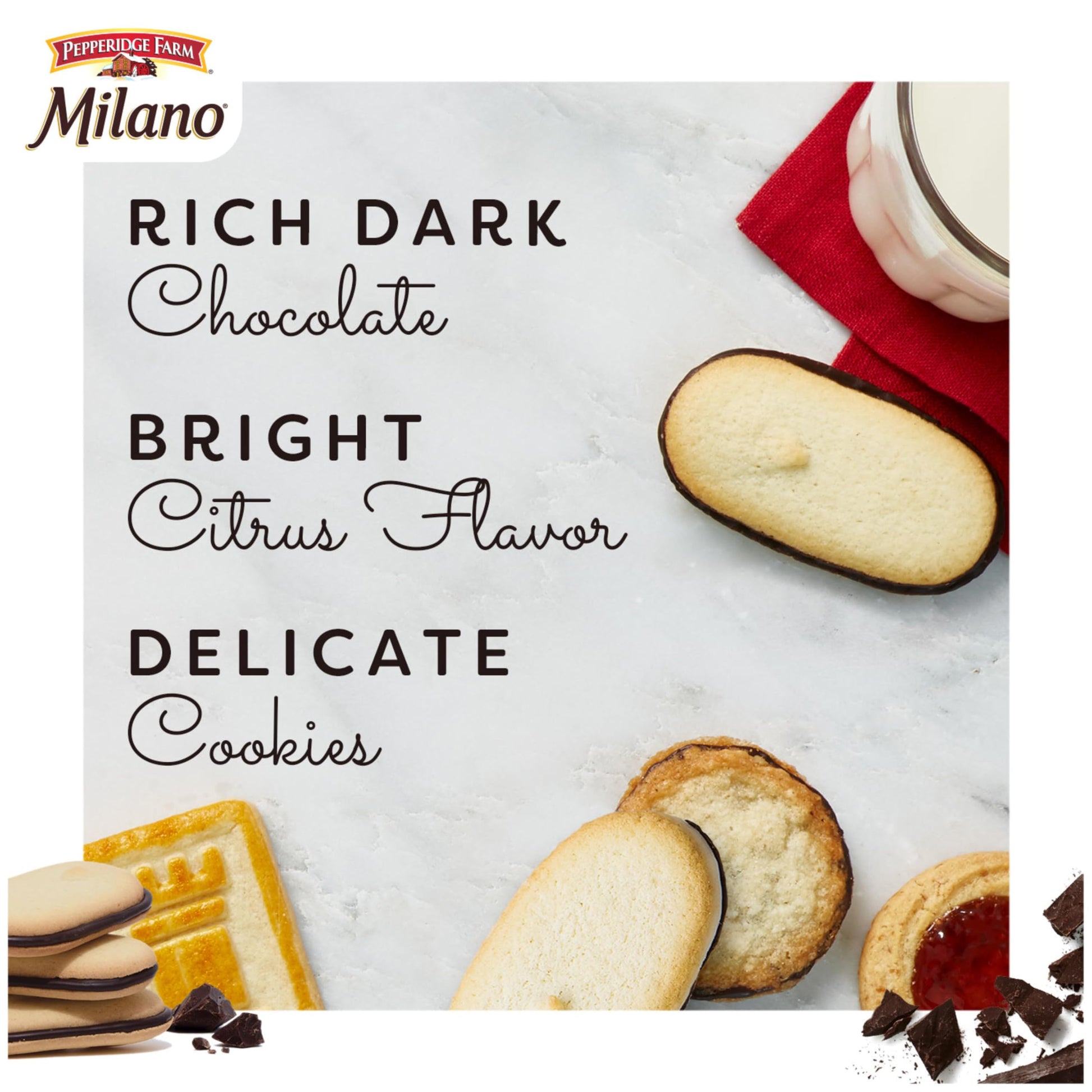Q: Can I try different flavors of Milano Cookies?A: Yes, Pepperidge Farm offers a variety of Milano sandwich cookie flavors, including Double Dark Chocolate, Raspberry Chocolate, Milk Chocolate, Mint Chocolate, and more, allowing you to find the perfect flavor for your moment.