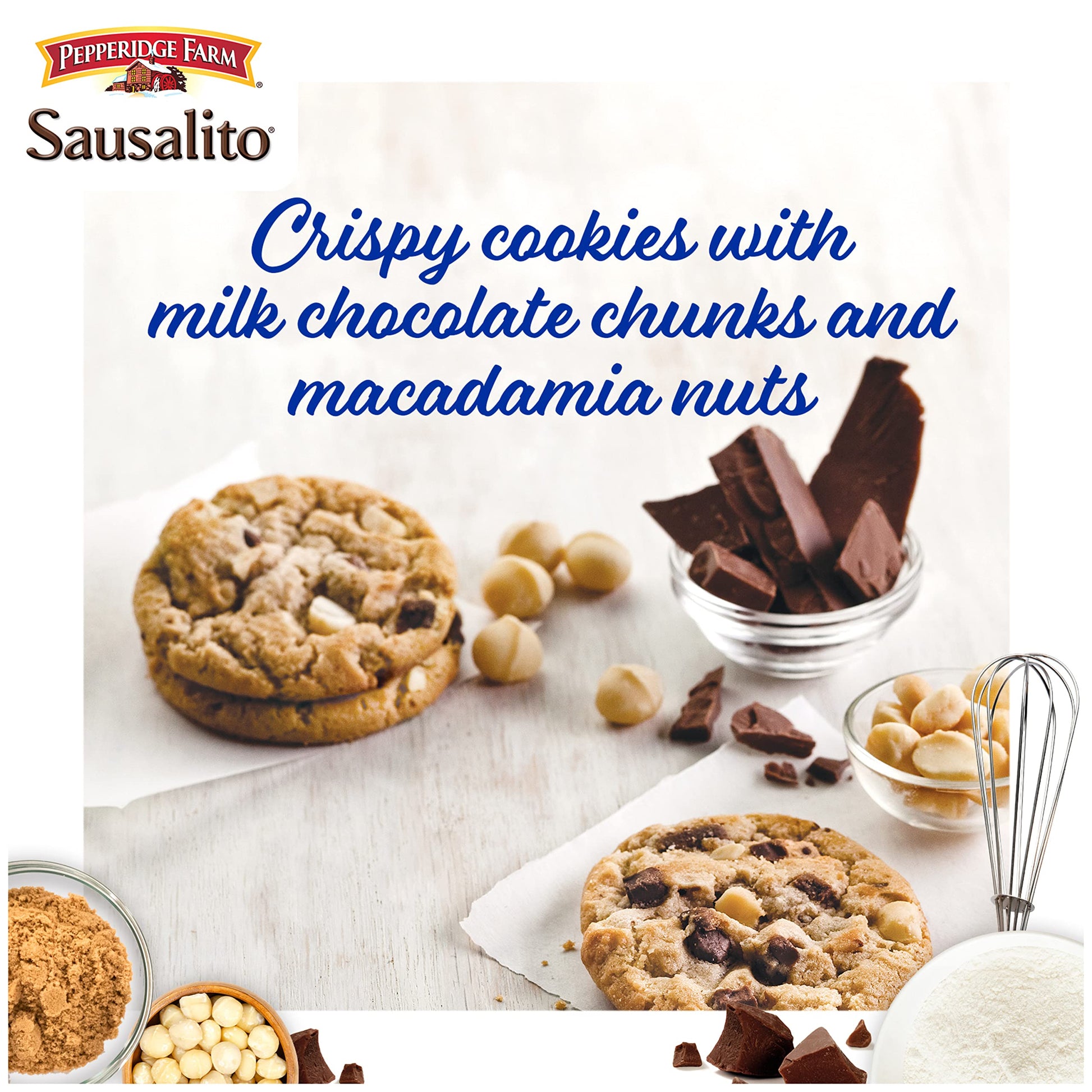 Enjoy the homemade taste of Pepperidge Farm Sausalito Crispy Milk Chocolate Macadamia Nut Cookies. Made with an abundance of rich milk chocolate chunks and crunchy macadamia nuts, these sweet and crispy cookies have a delicious melt-in-your mouth flavor. Every batch is baked with care and quality ingredients, including real eggs and real vanilla extract. Each 7.2-ounce bag contains 8 chocolate chip cookies and is perfect for sharing or stashing in your pantry to satisfy your cravings for sweet snacks. Enjoy Pepperidge Farm Sausalito Cookies on their own, dunk them in a cold glass of milk, or pair them with a hot cup of coffee. Looking for a quick and easy dessert idea for your next party? Our chocolate chunk cookies are great for serving on cookie platters and can be used to make other sweet treats such as ice cream sandwiches and sundaes. In addition to Sausalito Milk Chocolate Macadamia Nut Cookies, our line of chocolate chunk cookies also includes Tahoe White Chocolate Macadamia Nut Cookies, Chesapeake Dark Chocolate Pecan Cookies, and more. Pepperidge Farm cookies are crafted with care and quality ingredients by creative bakers who believe baking is more than a job – it’s a passion.