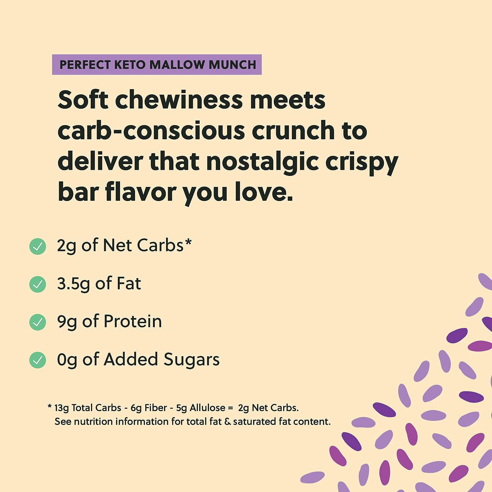 View comparePerfect Keto Mallow Munch, Gluten Free, Cereal Bars, Breakfast Bar, Rice-Free, Low Sugar, Low Carb, Crispy, High Protein Snack,